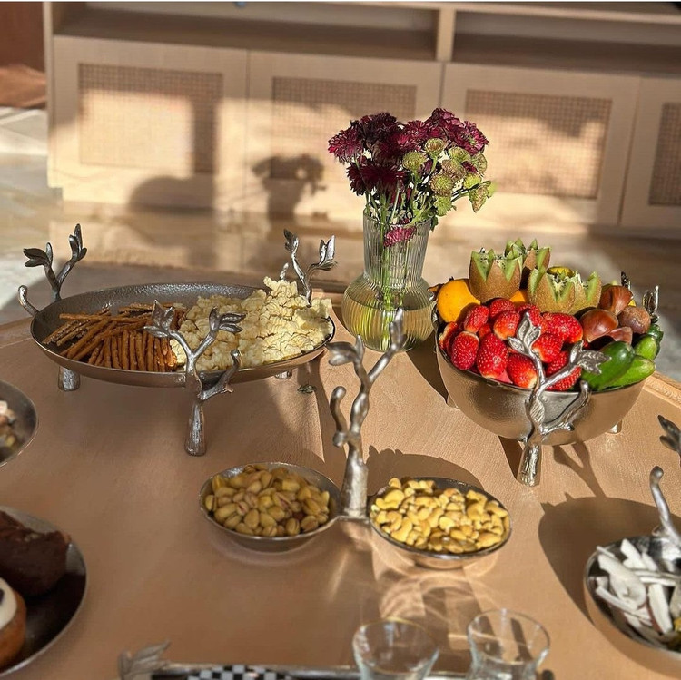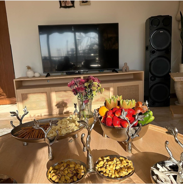 ✔️شامل : میوه خوری بیضی، شیرینی خوری 2 طبقه، آجیل خوری گرد، اردو خوری 2 تایی، شکلات خو