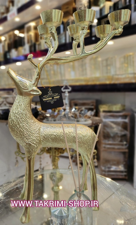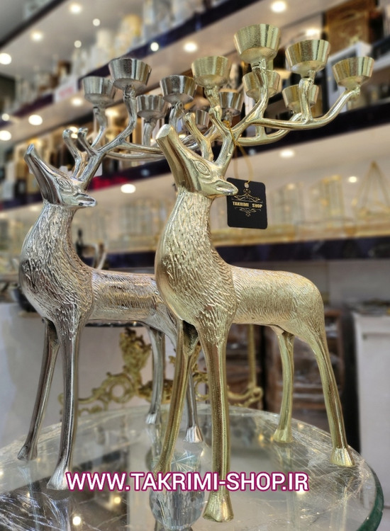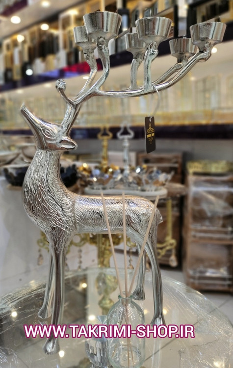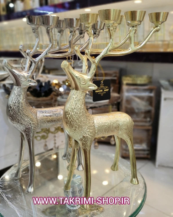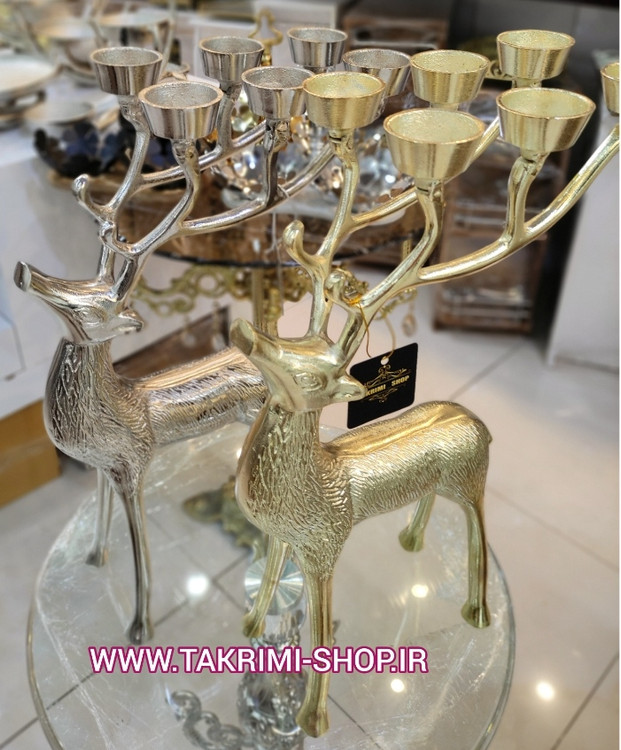 جا شمعی شمعدان 6 شعله گوزن طرح دار جنس اصلی بزرگ جنس آلومینیوم خالص ( 2 رنگ طلایی و نقره ای )