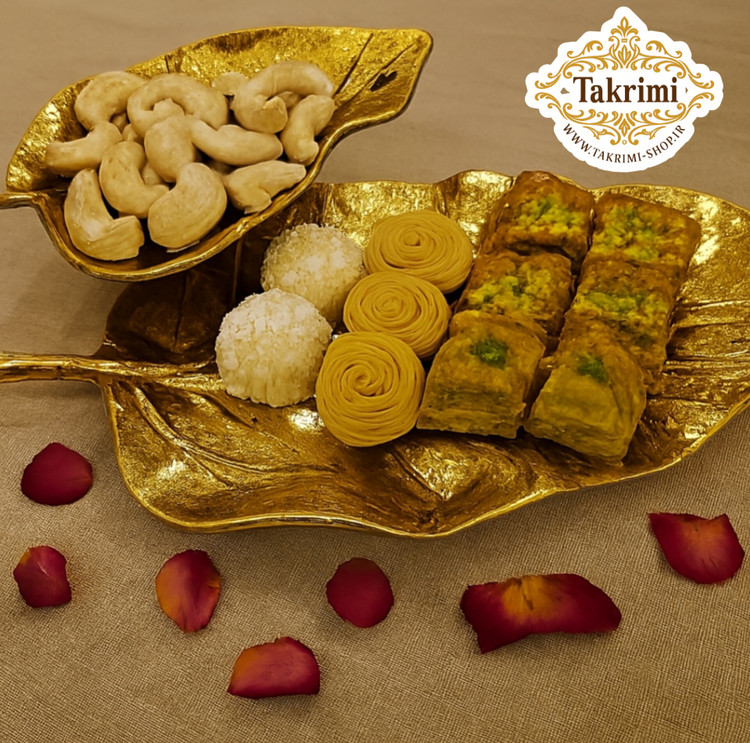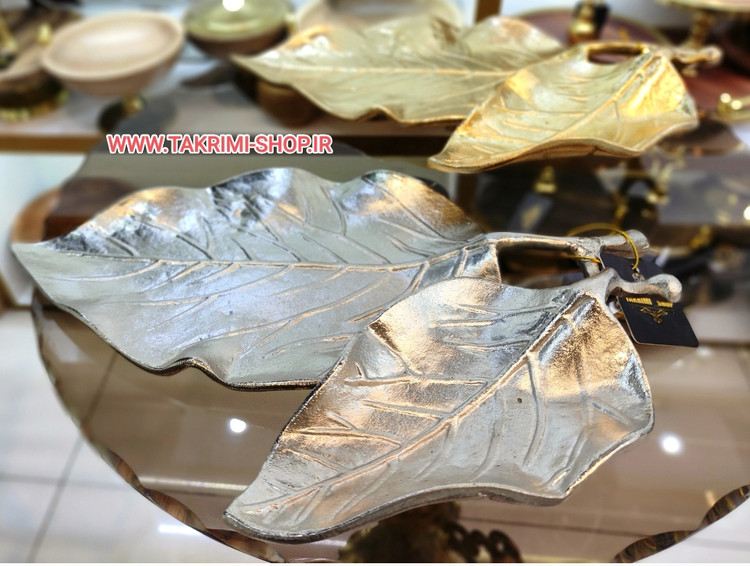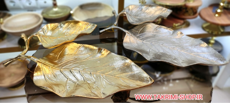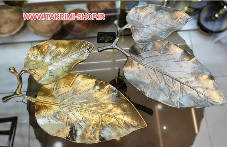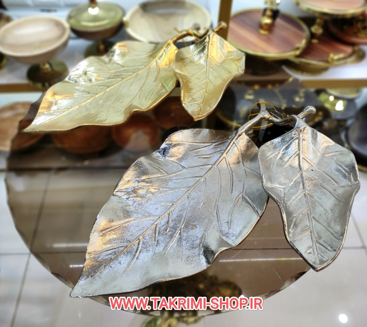شیرینی خوری یا میوه خوری برگ گردو جنس اصلی ( 3 رنگ طلایی ساده ، طلایی براق ، نقره ای ) ( تکریمی شاپ )