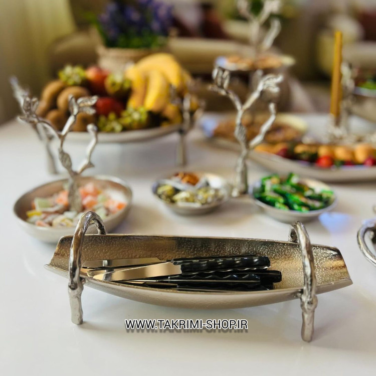 جا قاشقی جا کاردی جاقاشقی جاکاردی تخت خوابیده قایقی گلبرگ آلومینیومی طلایی و نقره ای ( تکریمی شاپ )