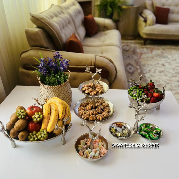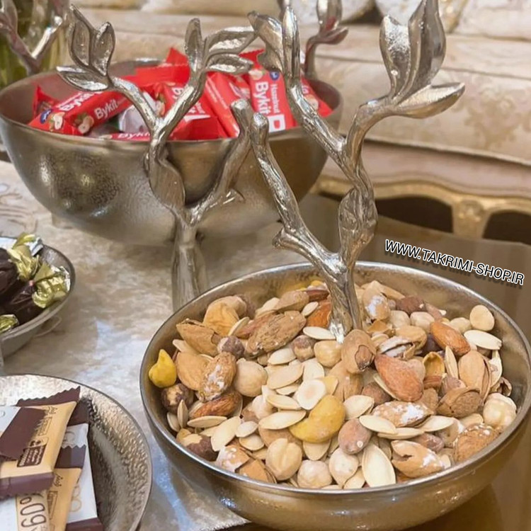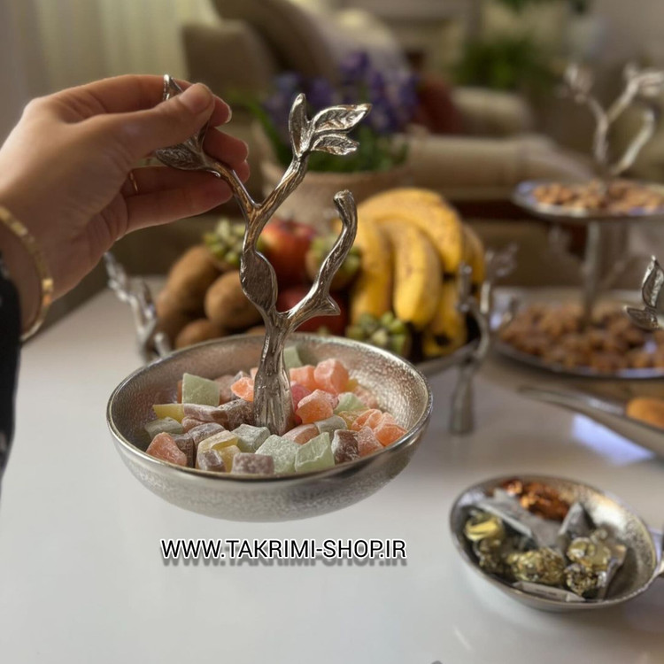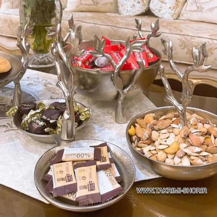 ظرف شکلات خوری تنقلات خوری شاخه گلبرگ نقره ای آلومینیومی