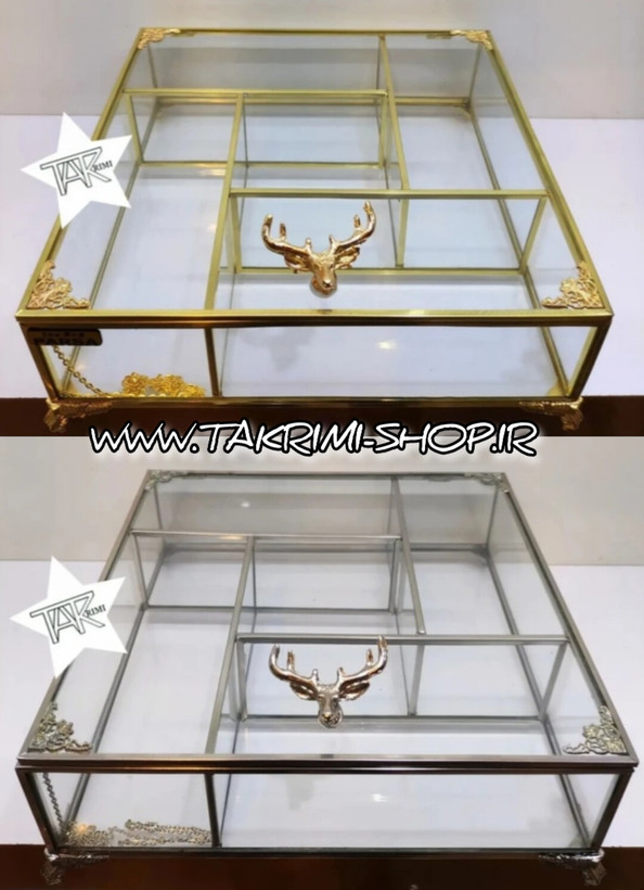 تی بگ تی باکس تیبگ مربع سایز بزرگ اصلی جنس شیشه و برنج خالص ( 2 رنگ نقره ای و طلایی )