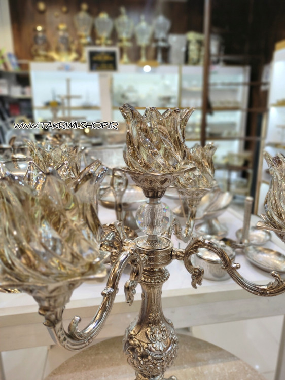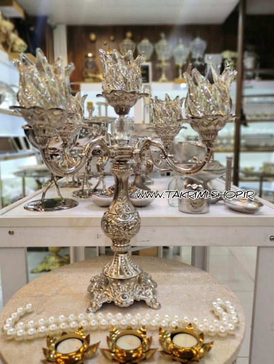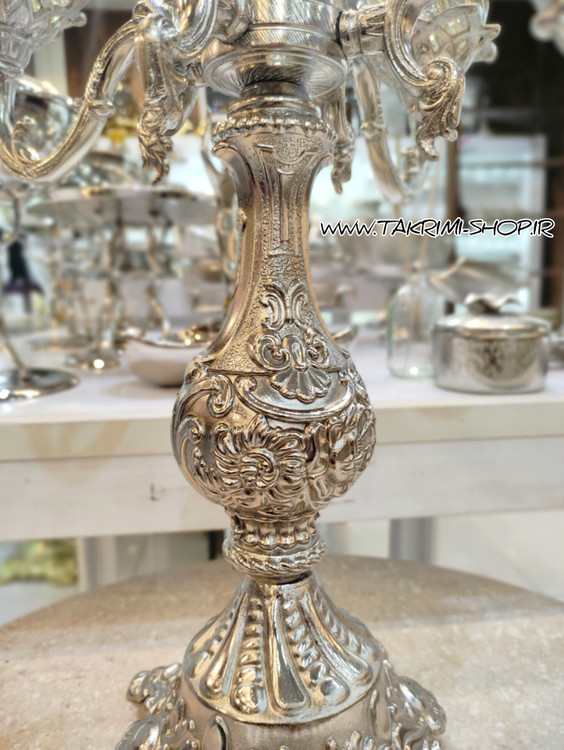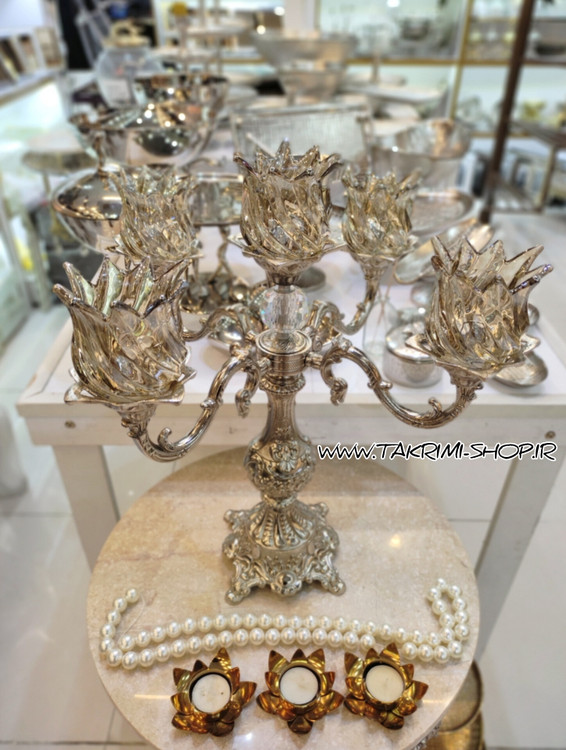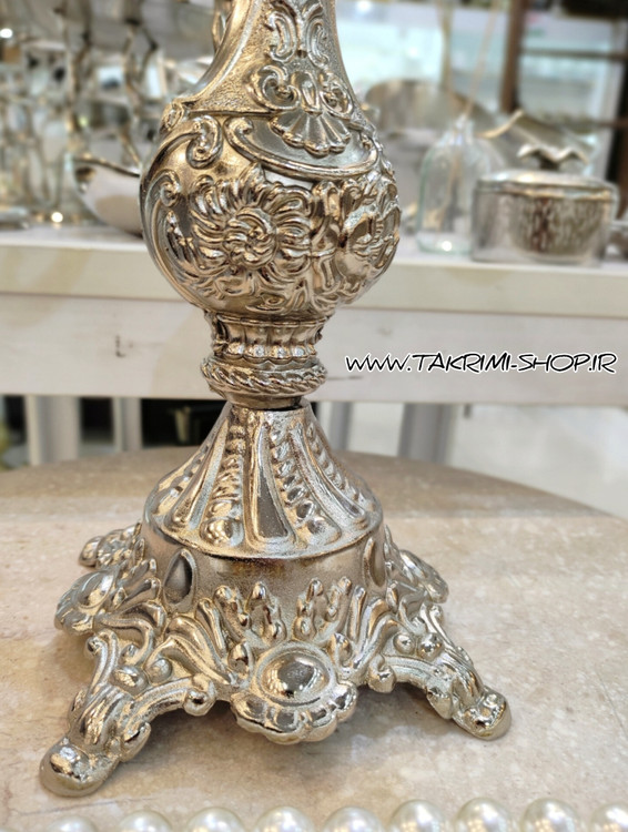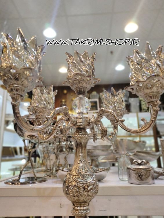 شمعدان جاشمعی شمع دان جا شمعی 5 پنج شعله نقره ای پایه بزرگ