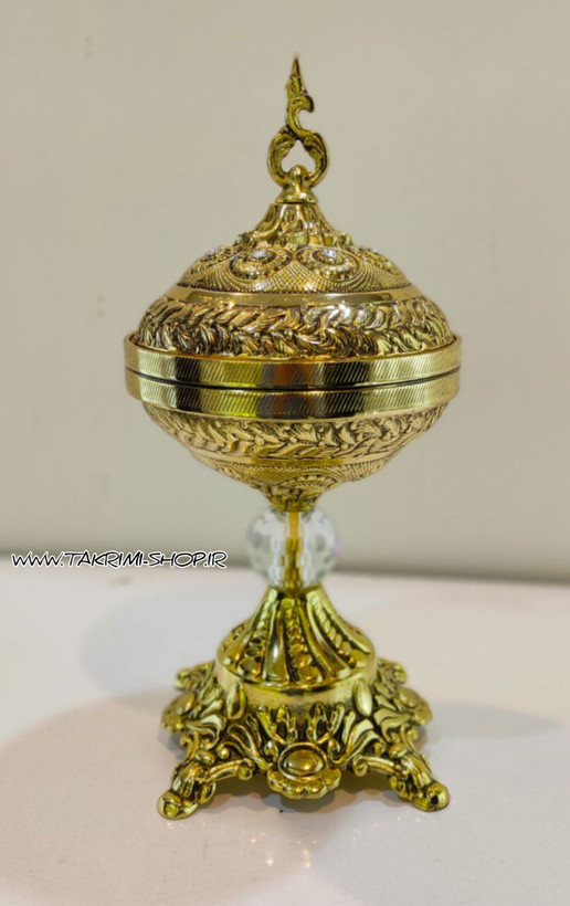 شکلات خوری ( سایز بزرگ ) یا آجیل خوری ( سایز کوچک ) سلطنتی با پایه بزرگ طرح برنجی