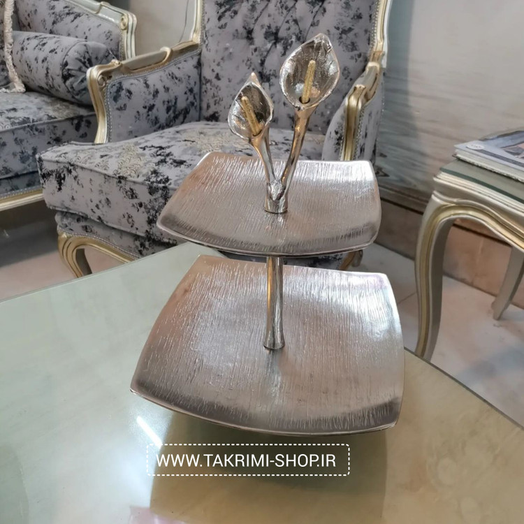 ✔️ شیرینی خوری 2 طبقه : عرض ظرف طبقه پایین 26 سانت ، عرض ظرف طبقه بالا 19 سانت ، ارتفاع کل از کف 37 سانت