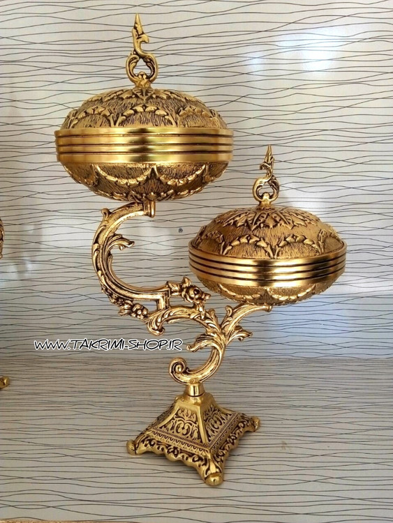 میکس تنقلات آجیل و شکلات سایز بزرگ گلبرگ سلطنتی طلایی طرح برنجی ( تکریمی شاپ )