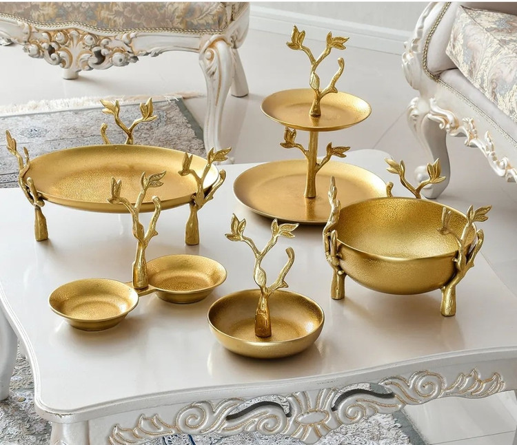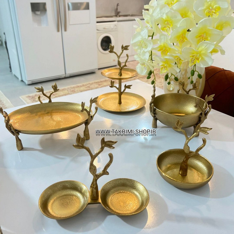 ✔️شامل : میوه خوری بیضی، شیرینی خوری 2 طبقه، آجیل خوری گرد، اردو خوری 2 تایی، شکلات خو