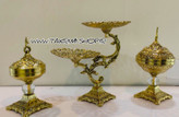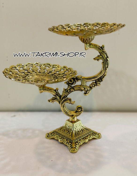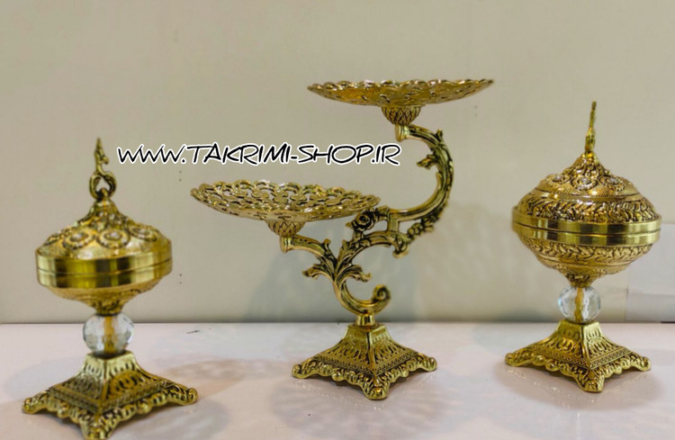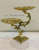 ست سرویس پذیرایی سه 3 تکه پارچه ( شامل شیرینی خوری 2 طبقه ، شکلات خوری ، آجیل خوری ) سلطنتی طرح برنجی