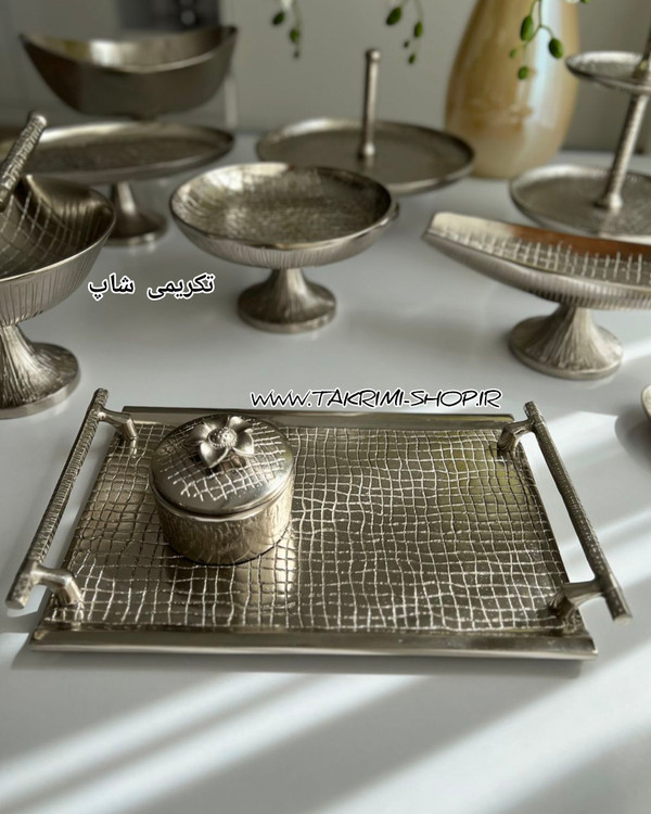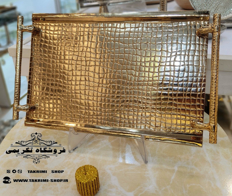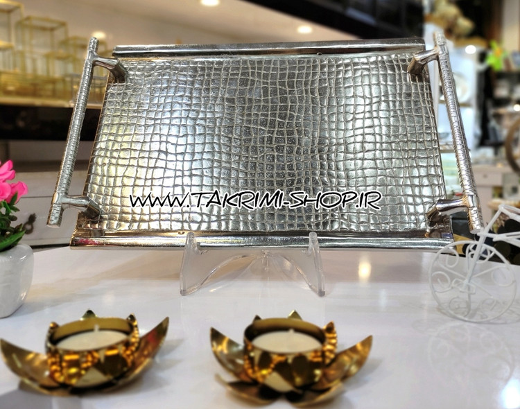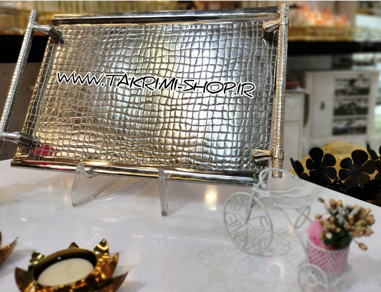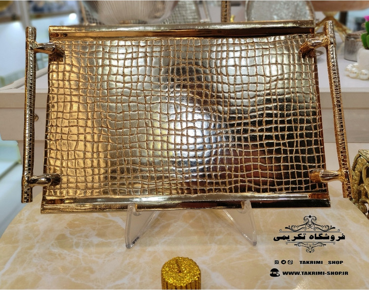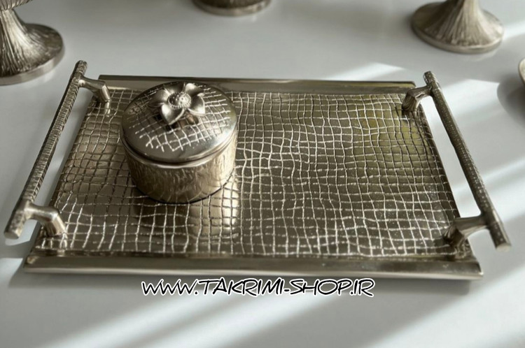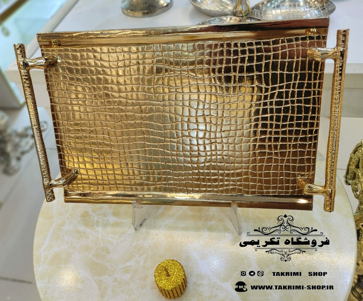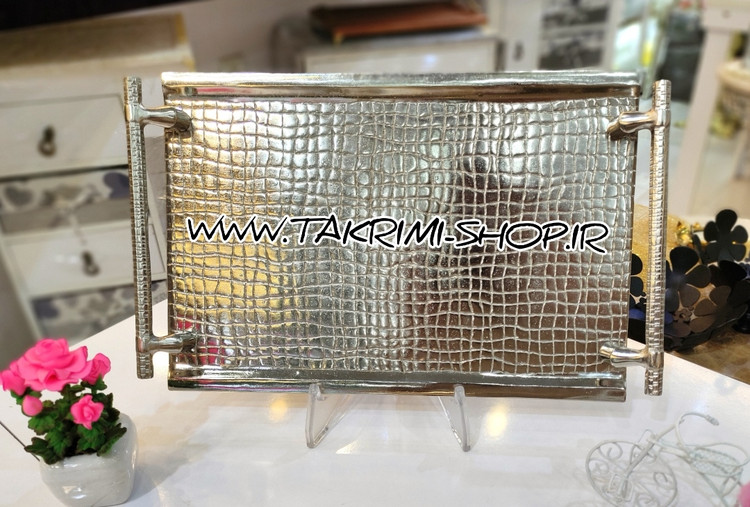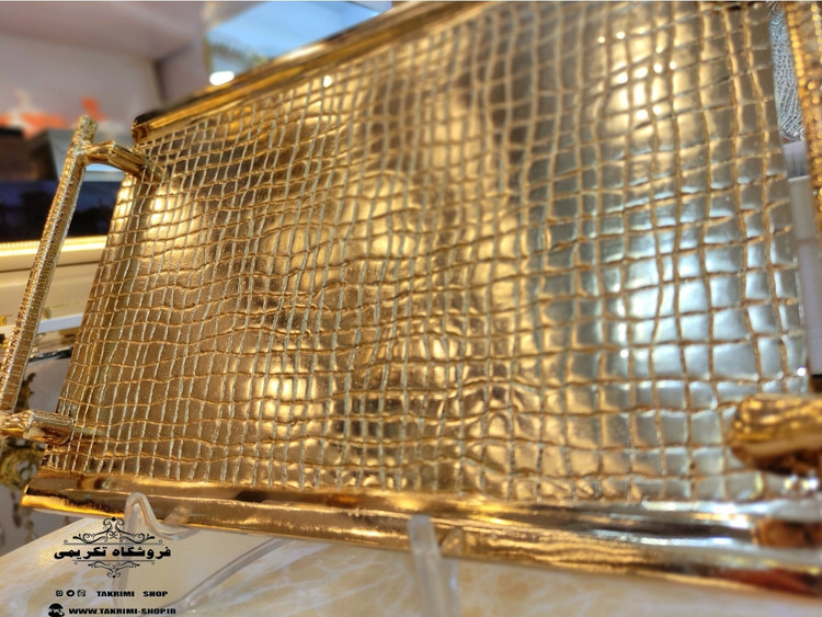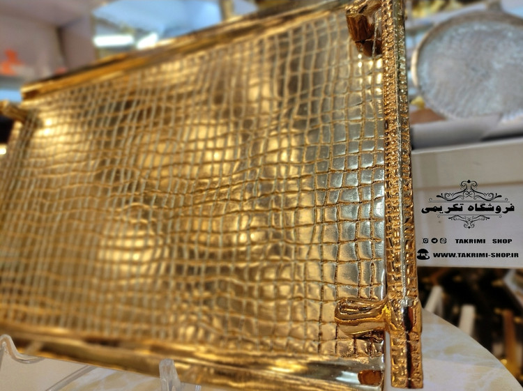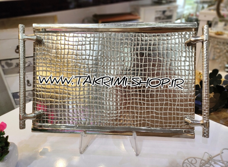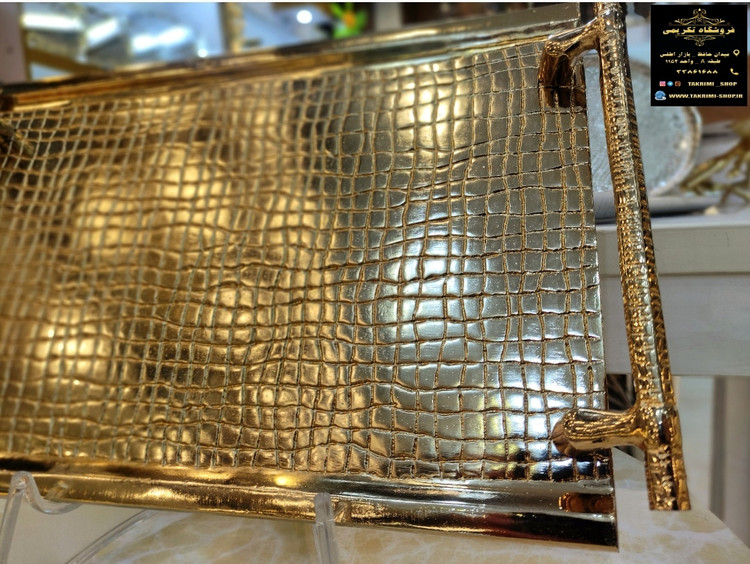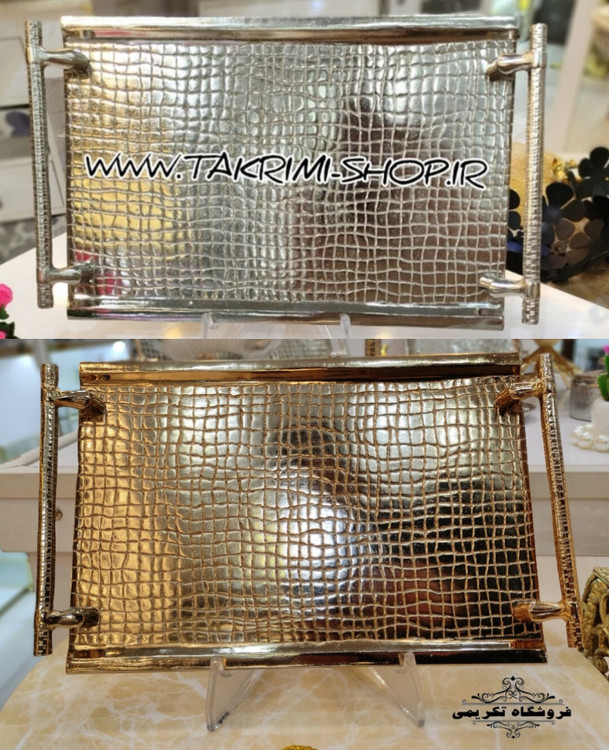 سینی چای خوری طرح چرمی پوست ماری تمساحی آلومینیومی خالص ( طلایی و نقره ای ) ( تکریمی شاپ )