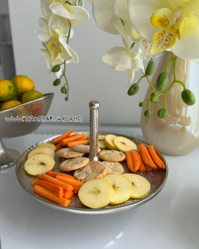 ظرف شیرینی خوری یا میوه خوری 1 یک طبقه سایز بزرگ دسته دار مدل چرمی پوست ماری آلومینیومی ( تکریمی شاپ )