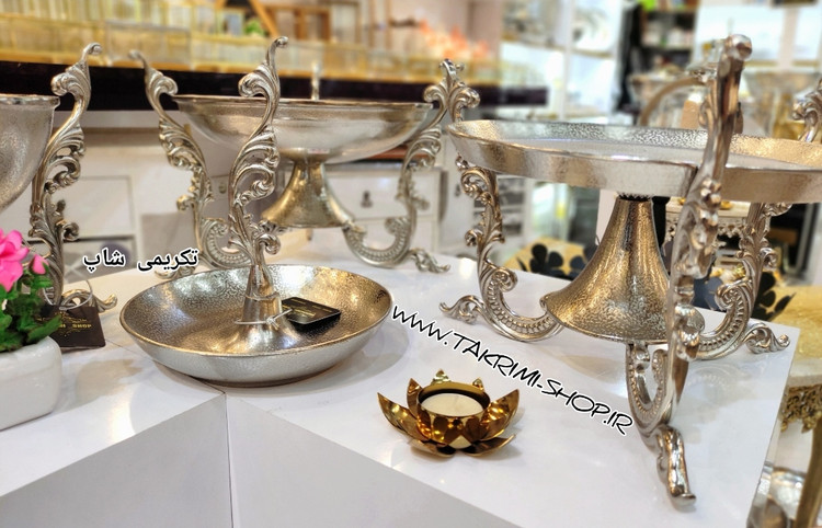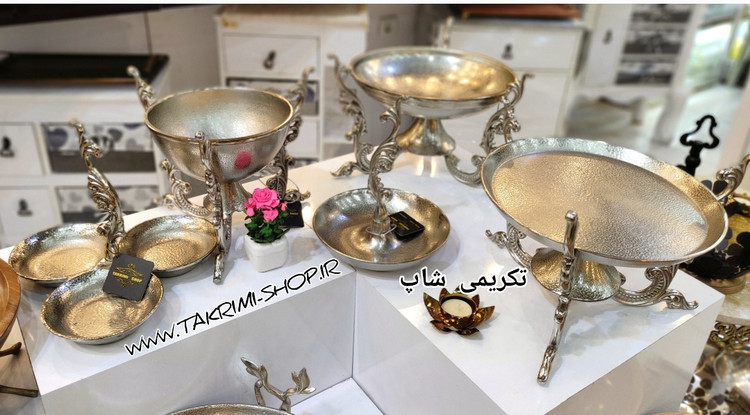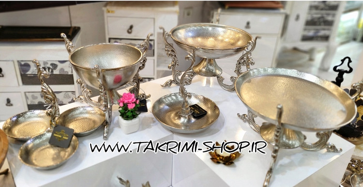 ست سرویس پذیرایی 5 پنج تکه پارچه دسته دار سلطنتی کلاسیک یاس نقره ای آلومینیومی ( تکریمی شاپ )