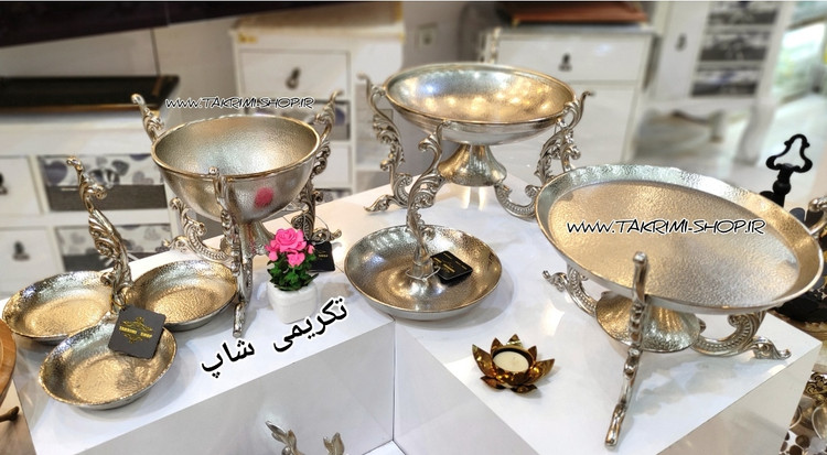 ✔️ شیرینی خوری : ارتفاع کل 24 ، عرض کل 32 ، قطر ظرف 27/5 ، عمق ظرف 2 سانتيمتر