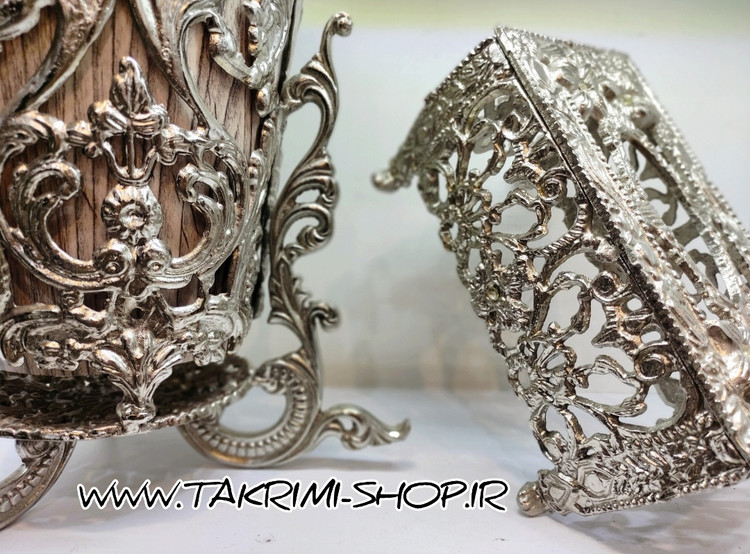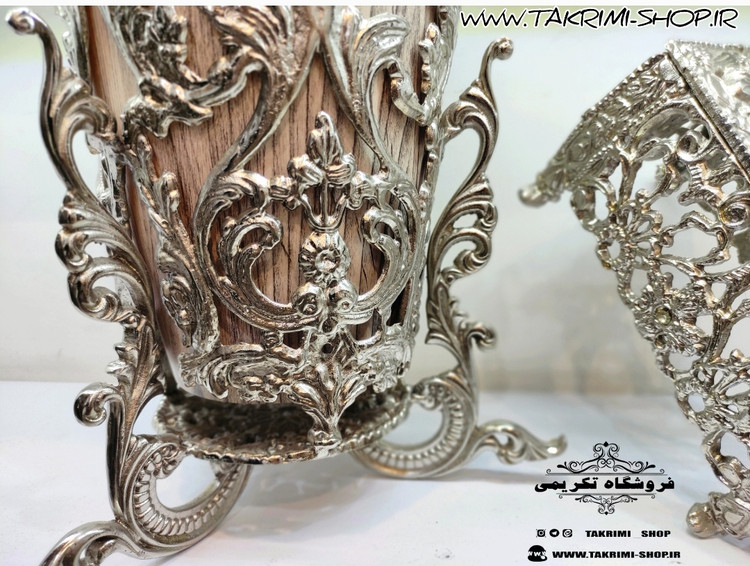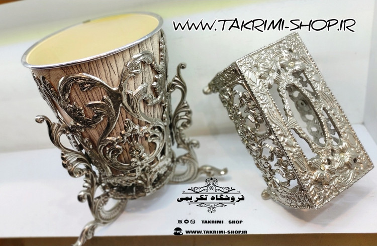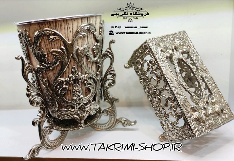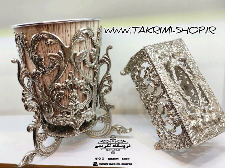 ست سطل و جای دستمالی جادستمالی سلطنتی پایه کوتاه نقره ای یاس آلیاژی آلومینیومی ( تکریمی شاپ )