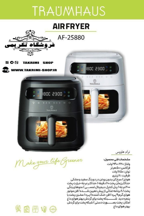 سرخ کن رژیمی دیجیتالی لمسی 8 لیتری ترام هاوس مدل 25880 ( موجود در 2 رنگ )