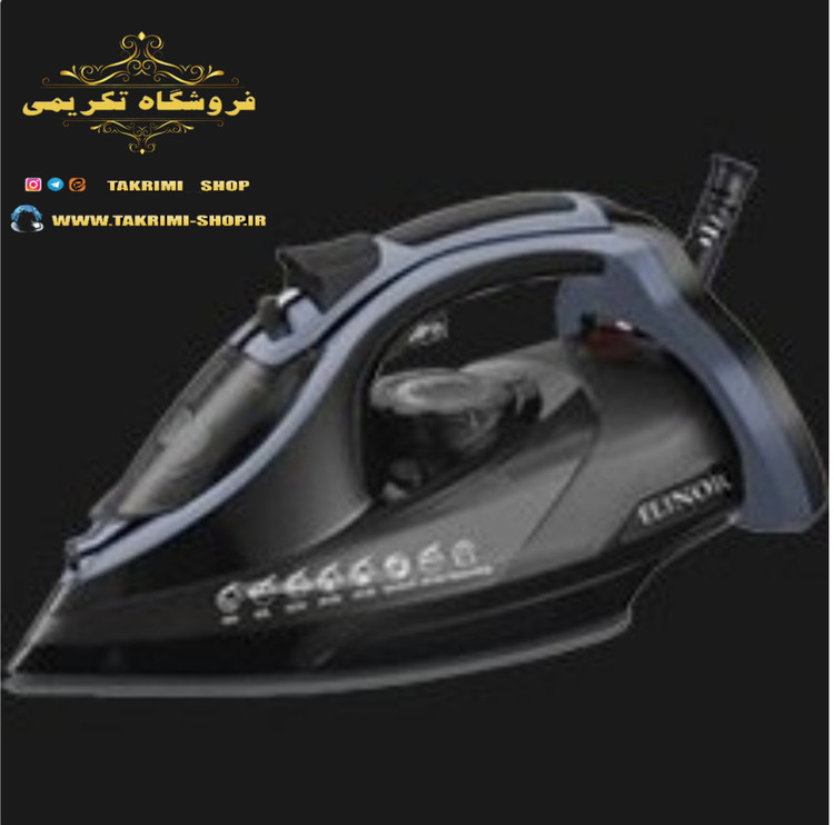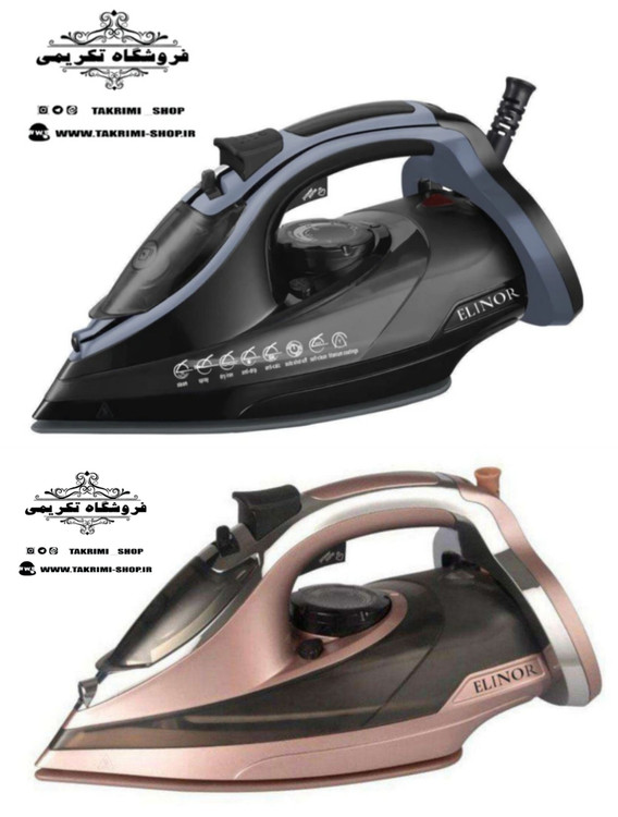 اتوبخار اتو دستی بخار الینور مدل 9800 قدرت ۳۰۰۰ وات کف تیتانیوم رنگ مشکی و رزگلد