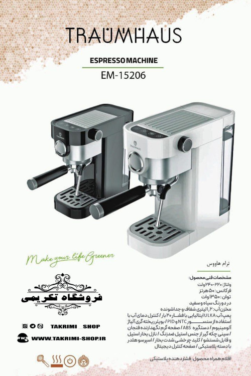اسپرسو دیجیتالی لمسی ترام هاوس اصلی مدل 15206 پمپ ایتالیایی ULKA فشار ۲۰ بار ( سایت تکریمی شاپ )