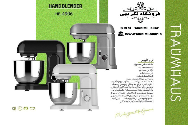 همزن هم زن فوق حرفه ای بسیار پر قدرت ترام هاوس اصلی مدل 4906 قدرت ۱۰۰۰ وات کاسه استیل ۵ لیتری ( سایت تکریمی شاپ )