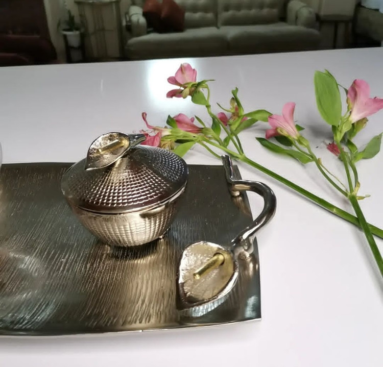 قندان قندون نقل خوری بدون پایه آلیاژی لیلیوم شیپور گلایل ( 2 رنگ طلایی و نقره ای )