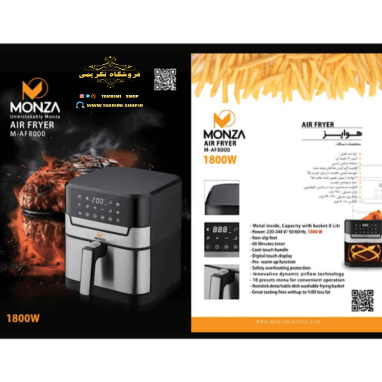 سرخ کن سرخکن رژیمی دیجیتالی لمسی مونزا مدل 8000 قدرت ۱۸۰۰ وات ظرفیت ۸ لیتر با سبد جدا شونده مونزا ( تکریمی شاپ )