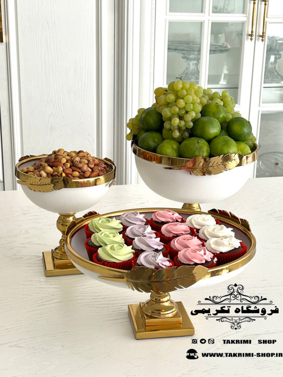 🔹شیرینی خوری : ارتفاع کل 17 سانتی متر ، قطر 31 سانتی متر ، عمق ظرف 4 سانتی متر