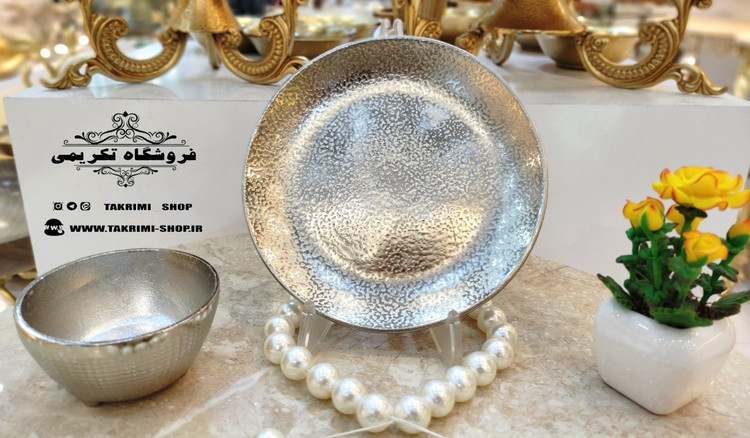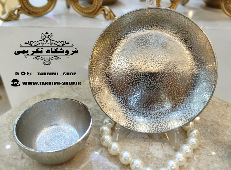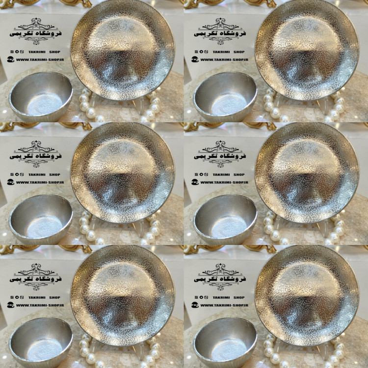 6 عدد پیاله و پیش دستی باهم ( یک دست پیاله + یک دست پیش دست ) چکشی شطرنجی نقره ای آلومینیومی خالص آلیاژی کاملاً نشکن ( تکریمی شاپ )