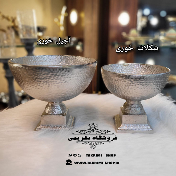 ظرف کاسه آجیل خوری طرح چکشی پایه مربع آلومینیومی آلیاژی ( تکریمی شاپ )