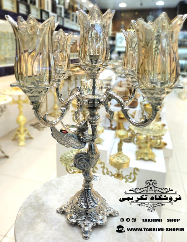 شمعدان شمعدون شمع دان شمع دون 5 شعله پنج شاخه فرشته سلطنتی آلومینیومی آلیاژی نقره ای ( تولیدی تکریمی شاپ )
