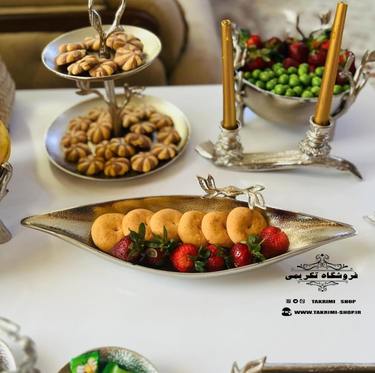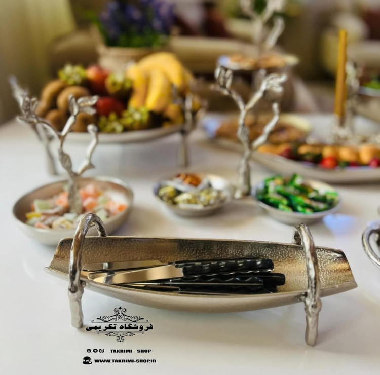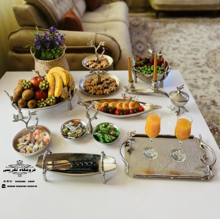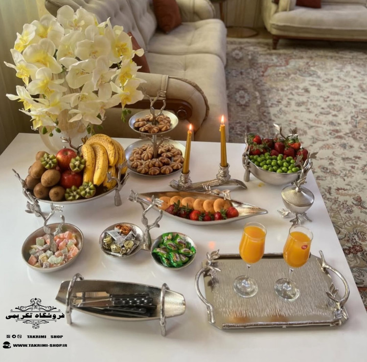 شمعدانی که در سرویس نقره ای در عکس مشاهده میکنید شامل سرویس نمیباشد ( و فقط برای عکسبرداری و دکوری روی میز چیده شده است )