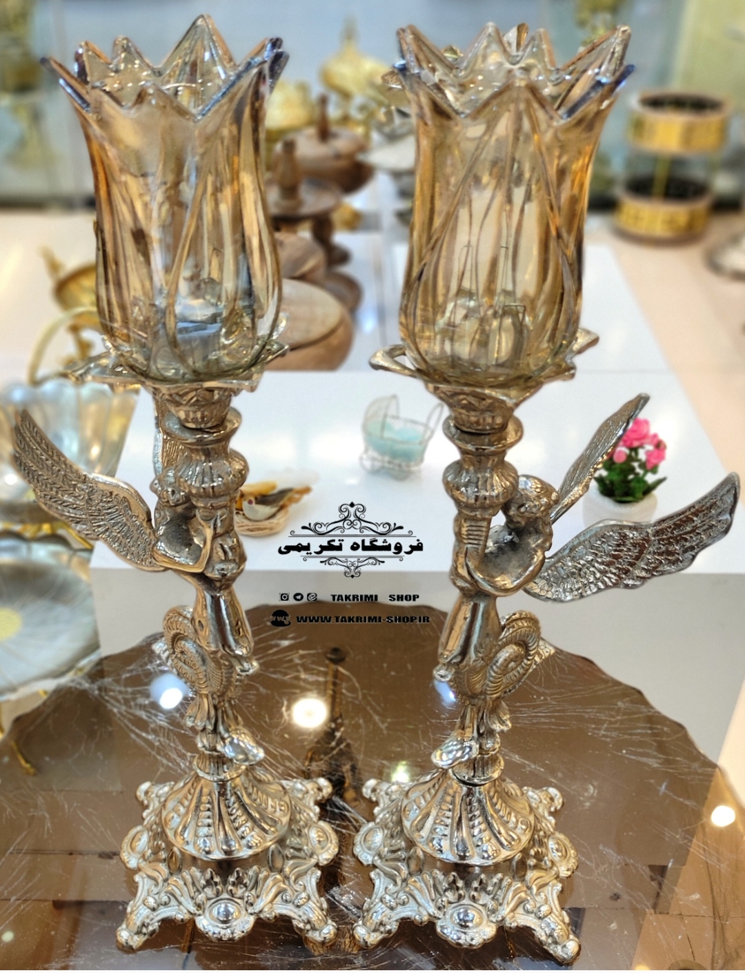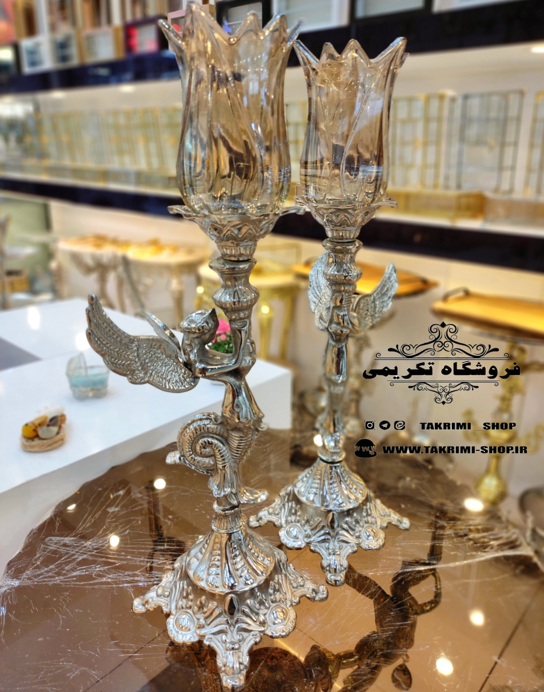 شمعدان شمعدون شمع دانی فرشته ( جفت ) آلیاژی آلومینیومی خالص ( تولیدی تکریمی شاپ )
