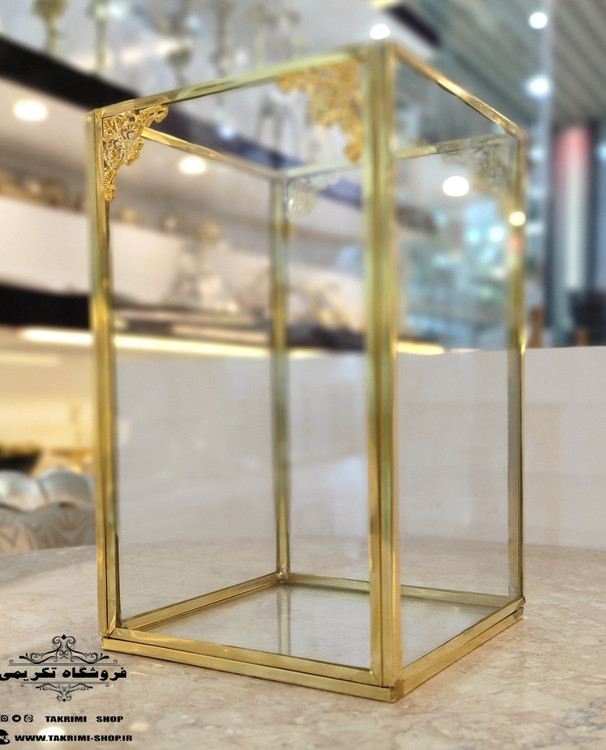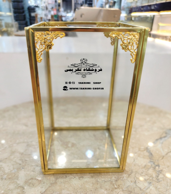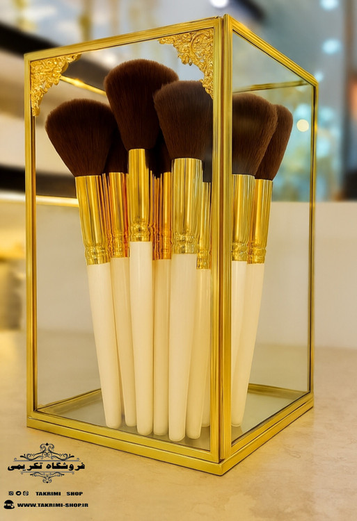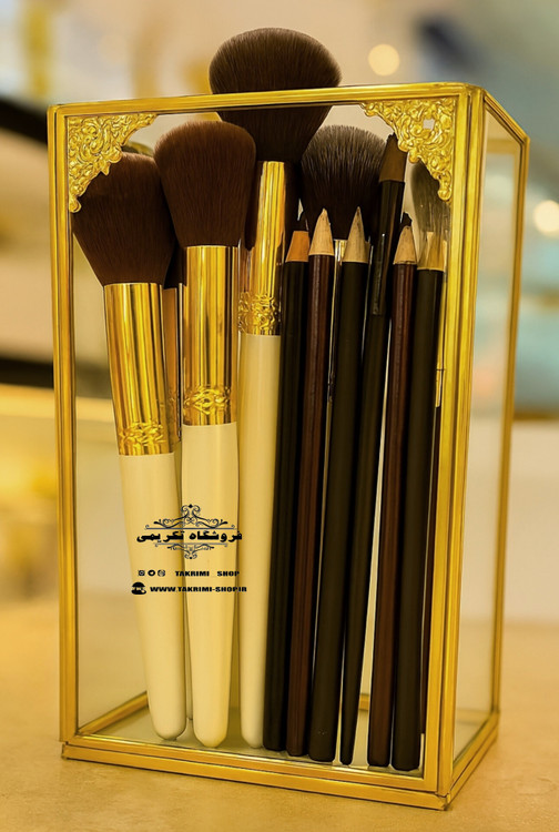 استند جابراشی جا براشی جای براشی لوازم آرایشی مداد باکس طلایی( بلند ) شیشه ای برنجی
