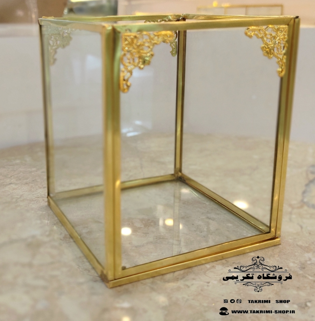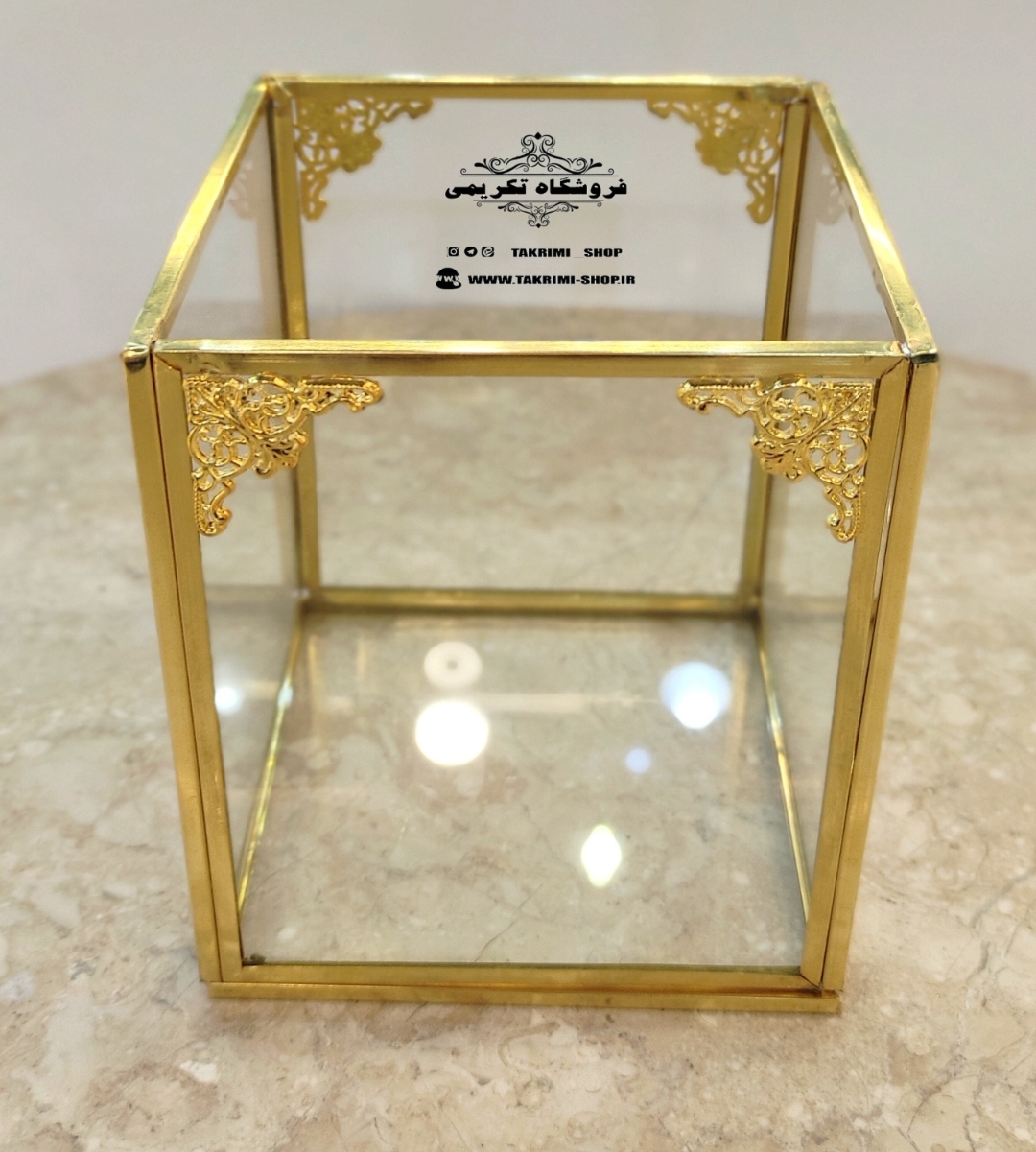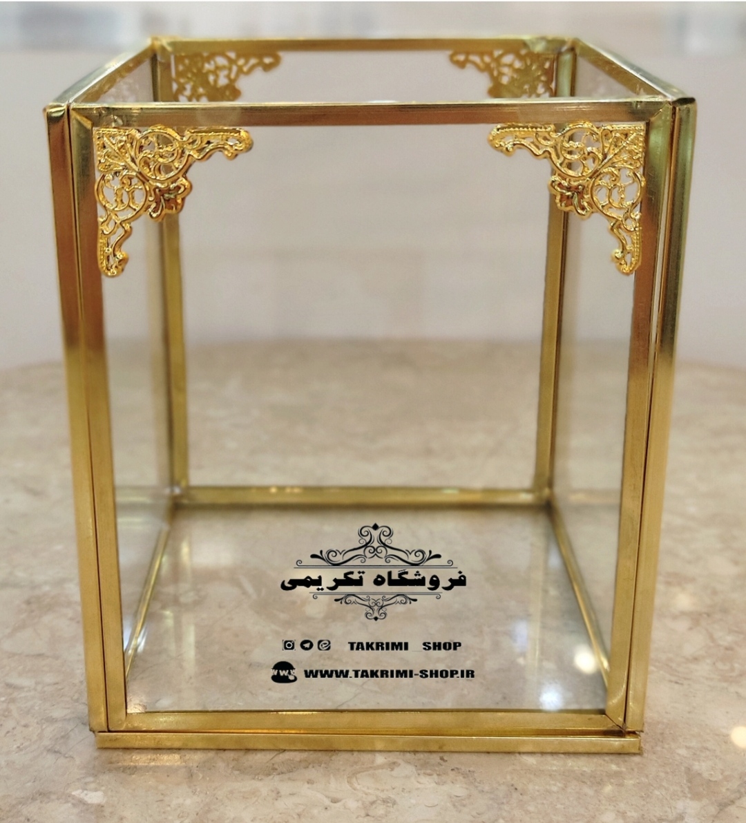 استند جابراشی جا براشی جای براشی لوازم آرایشی مداد باکس طلایی ( کوتاه ) شیشه ای برنجی