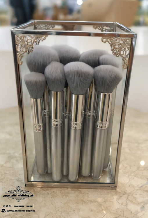 استند جابراشی جا براشی جای براشی لوازم آرایشی مداد باکس نقره ای ( بلند ) شیشه ای استیل خالص