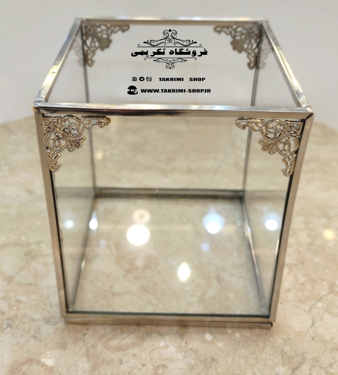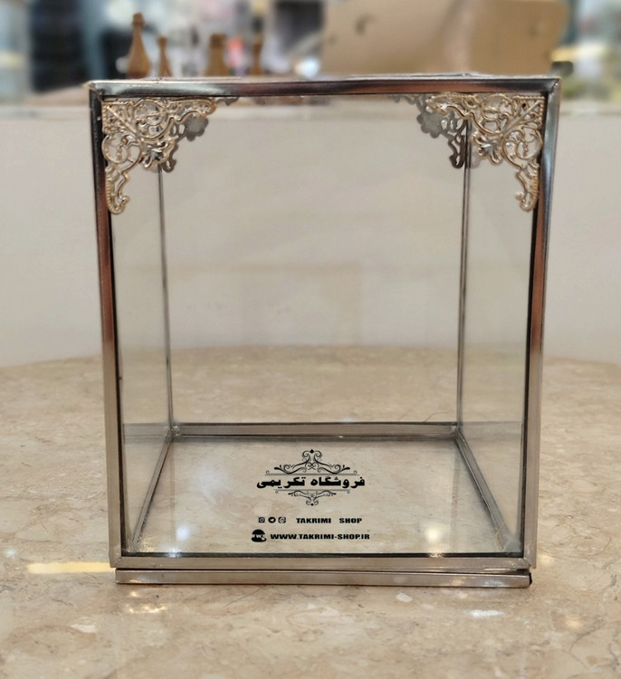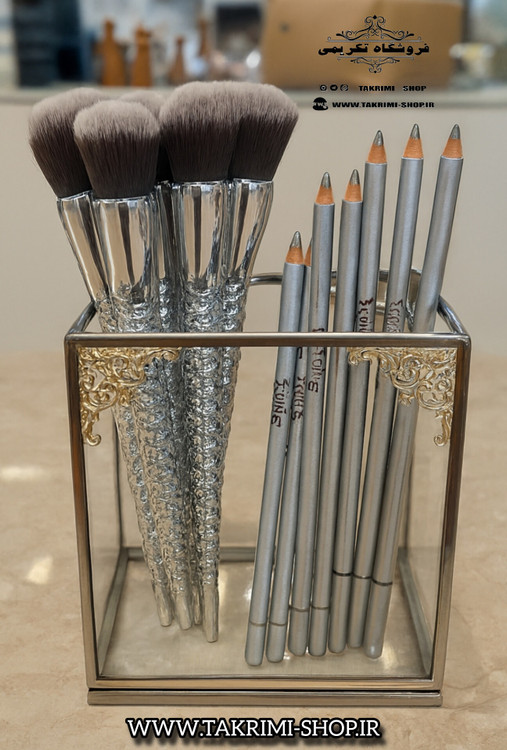 استند جابراشی جا براشی جای براشی لوازم آرایشی مداد باکس نقره ای ( کوتاه ) شیشه ای برنجی