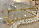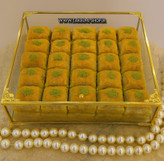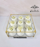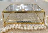 باکس شیشه ای خواستگاری خاستگاری شیرینی مینی کاپ کیک باقلوا درب دار مربع ( متوسط ) طلایی جنس شیشه ای و برنجی