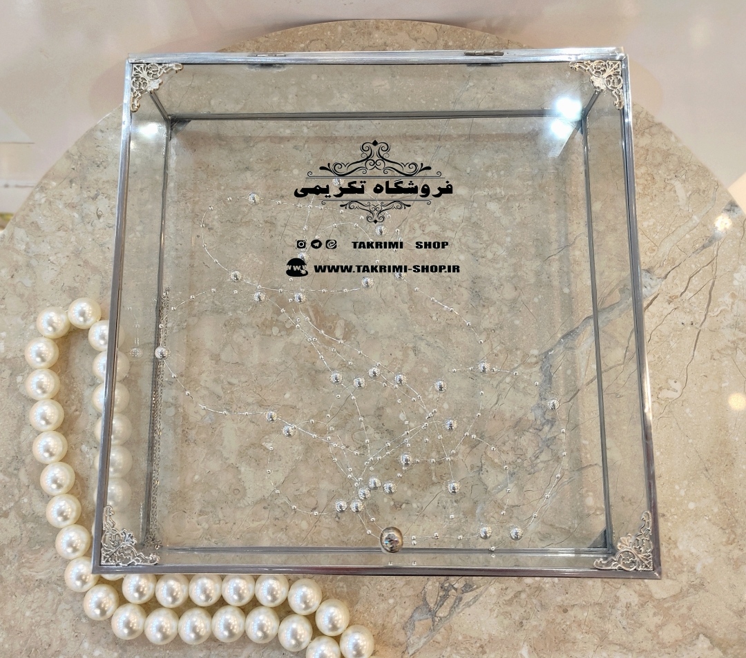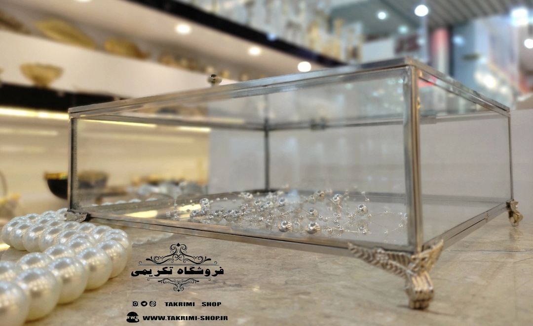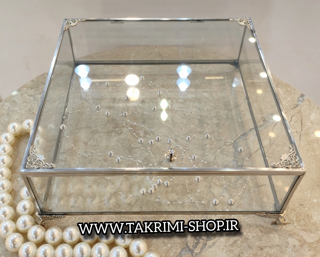 باکس شیشه ای خواستگاری خاستگاری شیرینی مینی کاپ کیک باقلوا درب دار مربع ( متوسط ) نقره ای جنس شیشه ای و استیل خالص