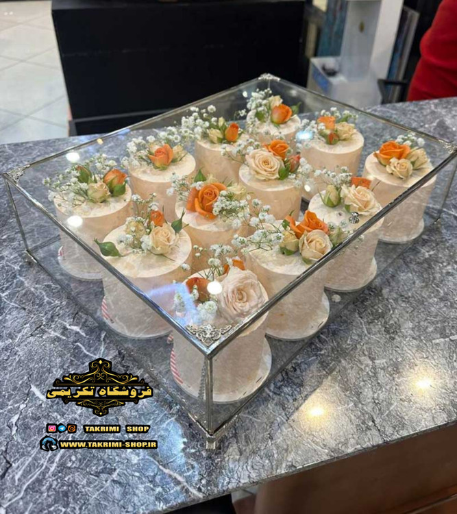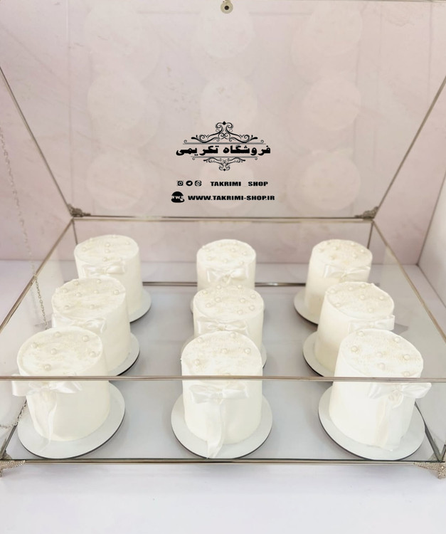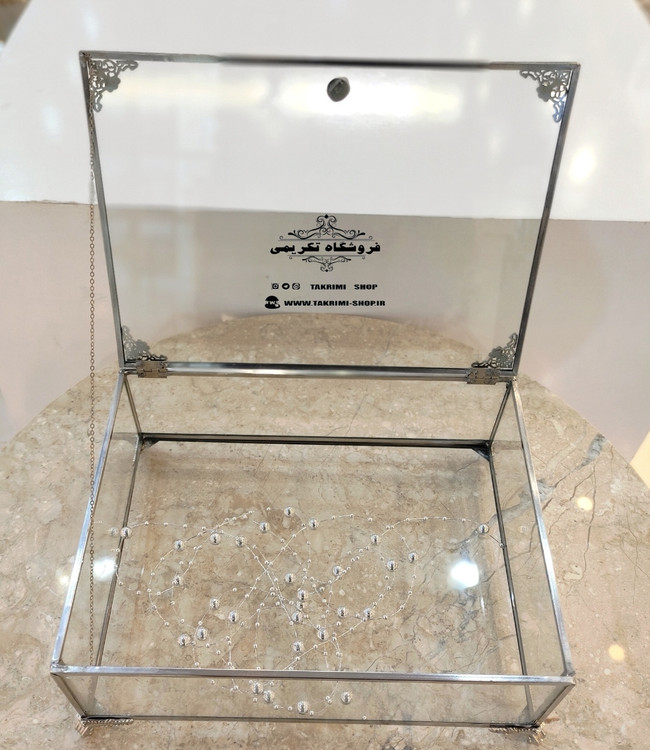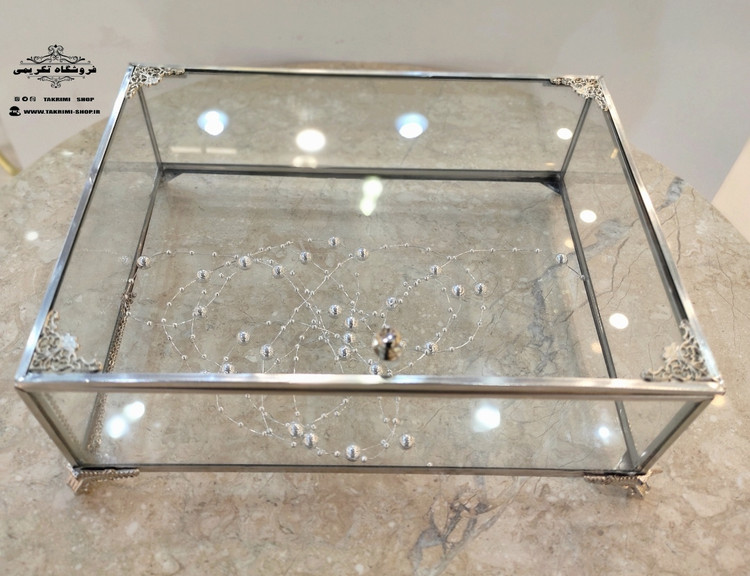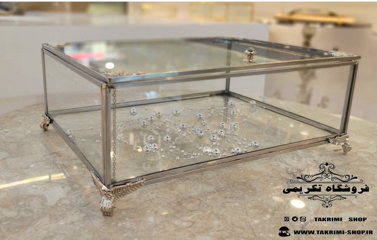 باکس شیشه ای خواستگاری خاستگاری شیرینی مینی کاپ کیک باقلوا درب دار مستطیل ( کوچک ) نقره ای جنس شیشه ای و استیل خالص