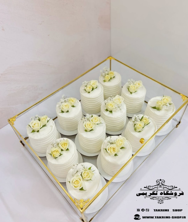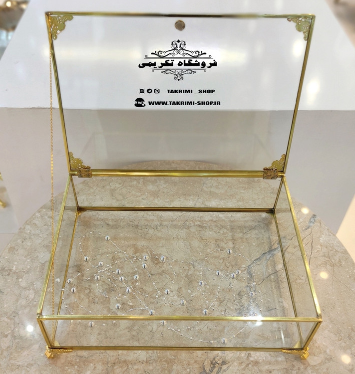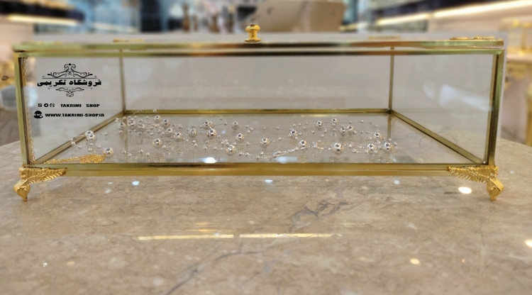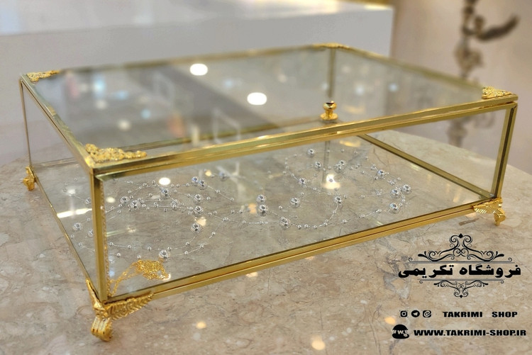 باکس شیشه ای خواستگاری خاستگاری شیرینی مینی کاپ کیک باقلوا درب دار مستطیل ( متوسط ) طلایی جنس شیشه ای و برنجی