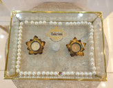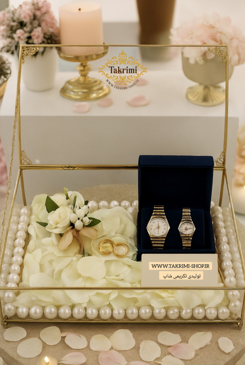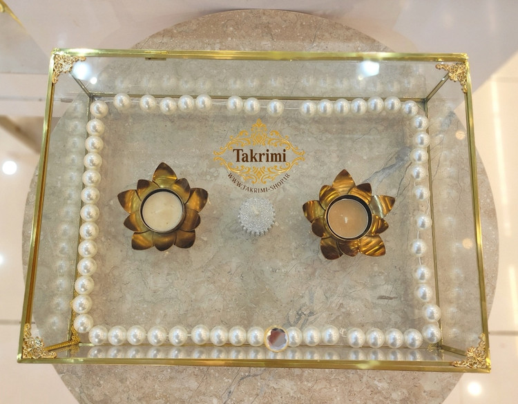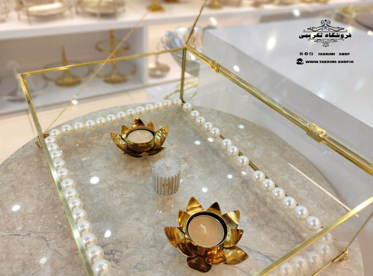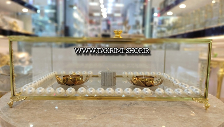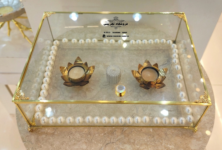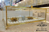 باکس شیشه ای خواستگاری خاستگاری شب یلدایی شب چلگی چله ای شیرینی مینی کاپ کیک باقلوا درب دار مستطیل ( خیلی بزرگ ) طلایی جنس شیشه ای و برنج خالص