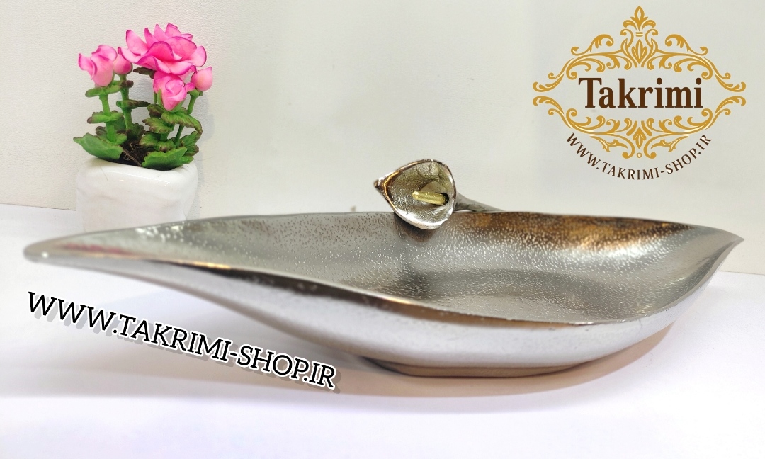 کشکول استند ظرف رولت خوری یا بیسکوئیت خوری یا شکلات خوری یا خرما خوری گل لیلیوم شیپوری گلایل آلومینیومی آلیاژی خالص ( تولیدی تکریمی شاپ )