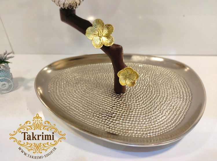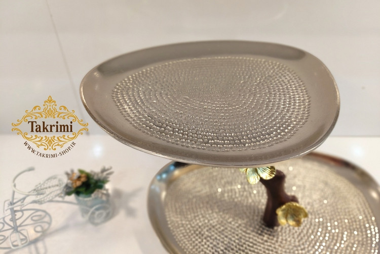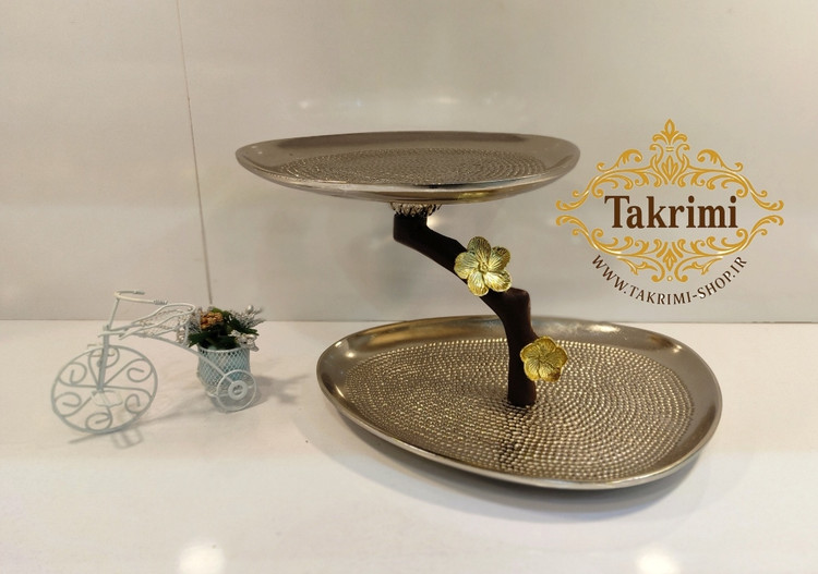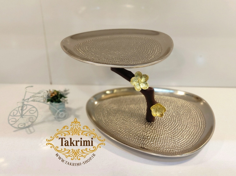 استند ظرف شیرینی خوری دو 2 طبقه 2طبقه دفرمه گل فلورا آلومینیومی خالص ( تکریمی شاپ )