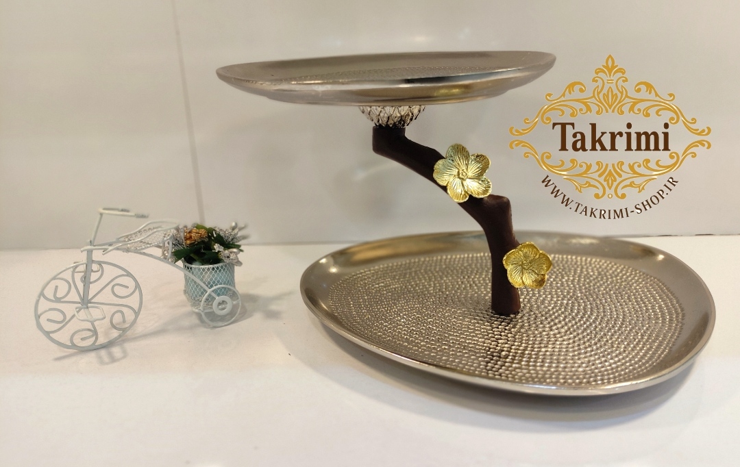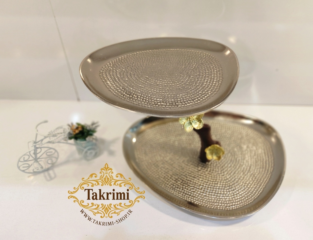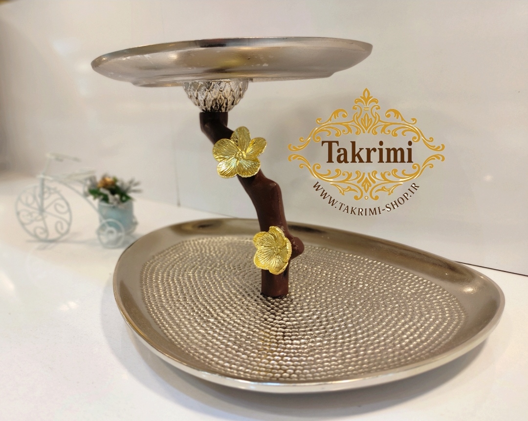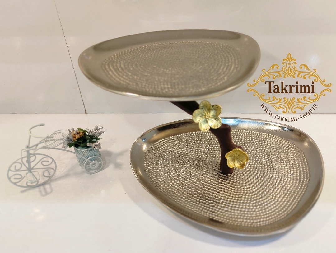 استند ظرف شیرینی خوری دو 2 طبقه 2طبقه دفرمه گل فلورا آلومینیومی خالص ( تکریمی شاپ )