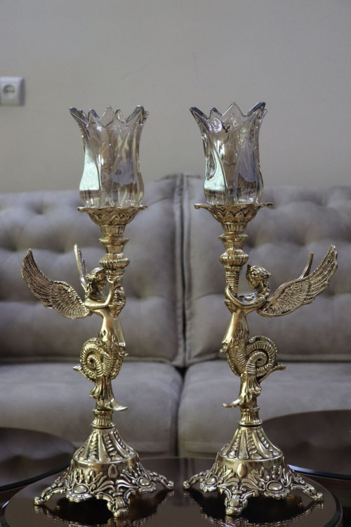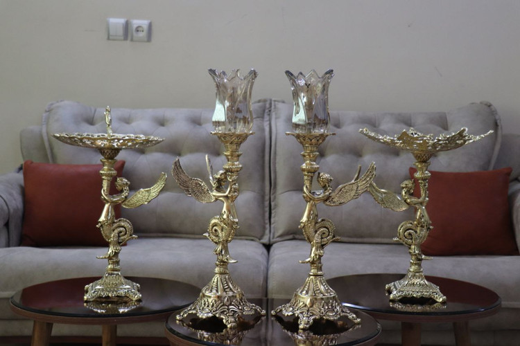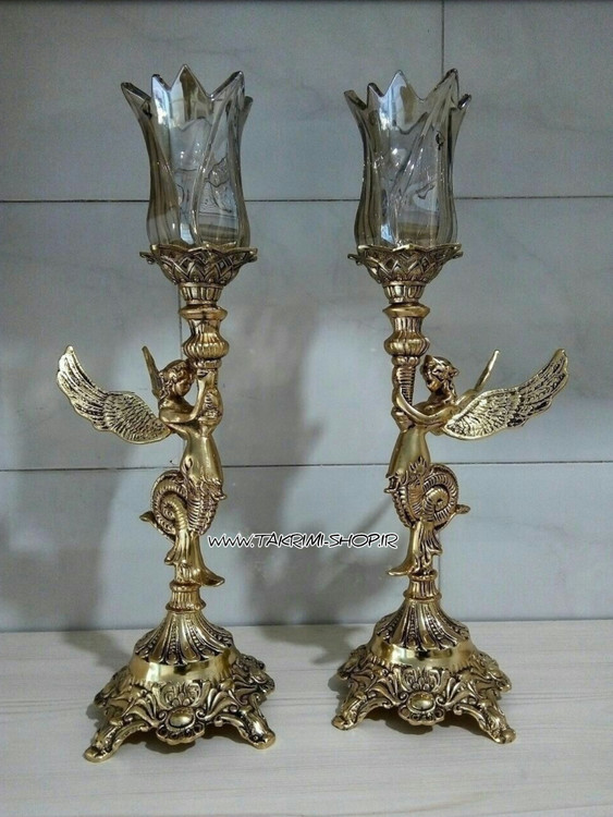 شمعدان فرشته سلطنتی طلایی جنس آلومینیوم خالص که آهن ربا نمیگیره ( جفتی )