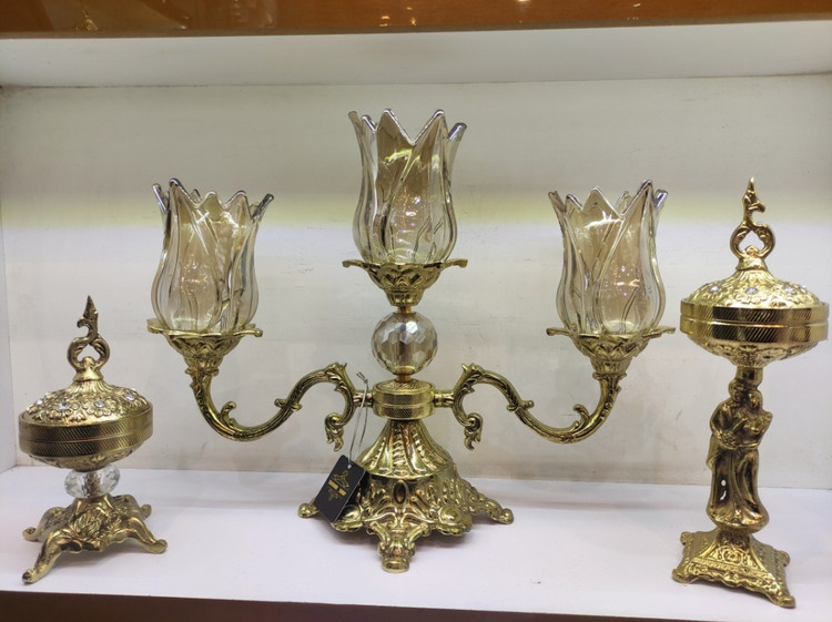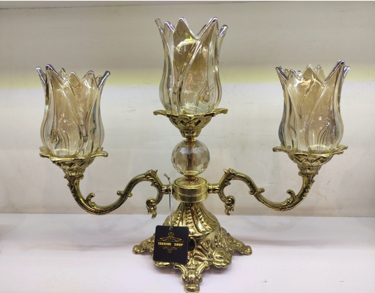 جاشمعی جا شمعی شمعدان 3 سه شعله سلطنتی طلایی