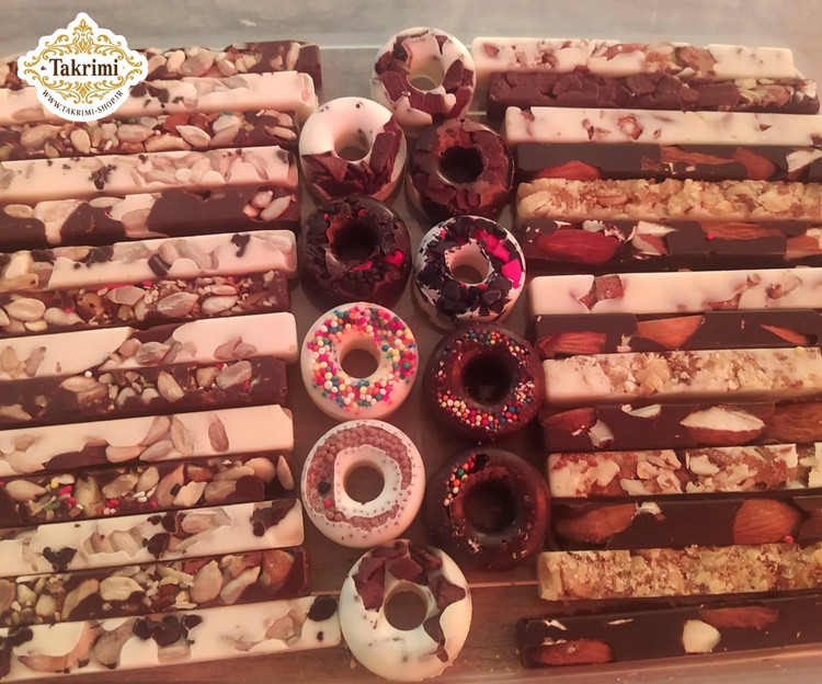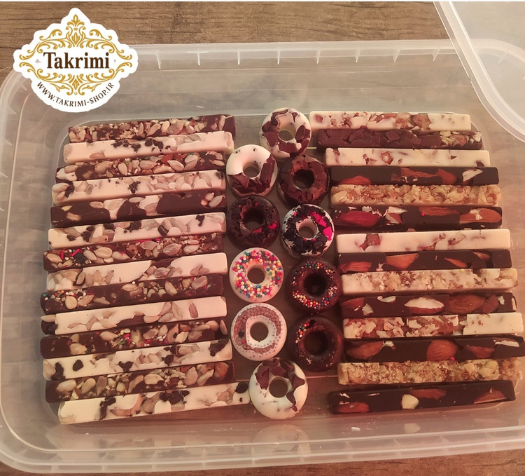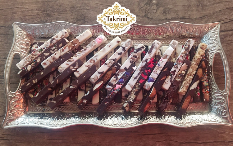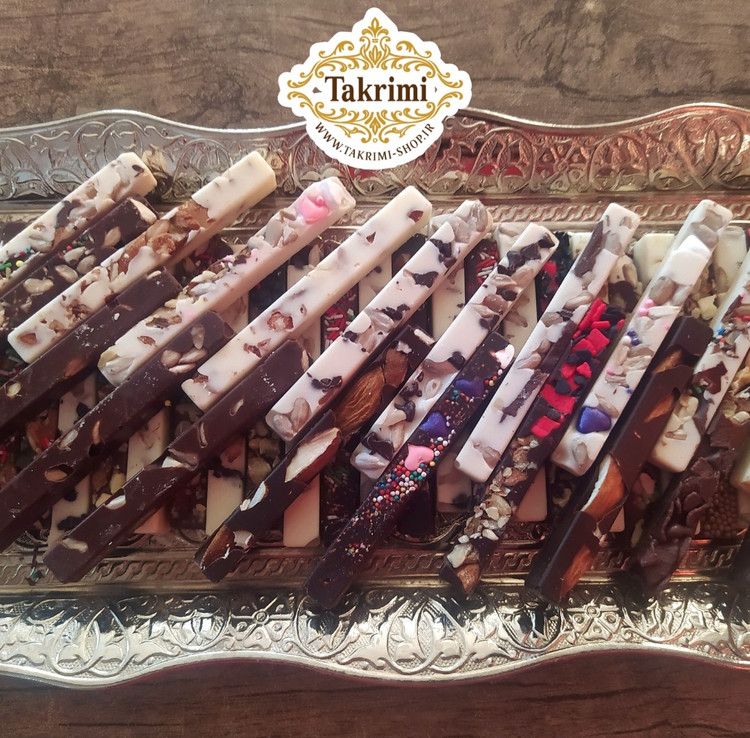 شکلات کاکائویی مغزدار ( 310 گرمی ) مغز دار ترکیبی سیگاری و گرد ( بادام هندی ،بادام ، فندق ، پسته ، گردو ، مغز تخمه )