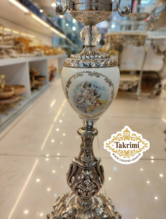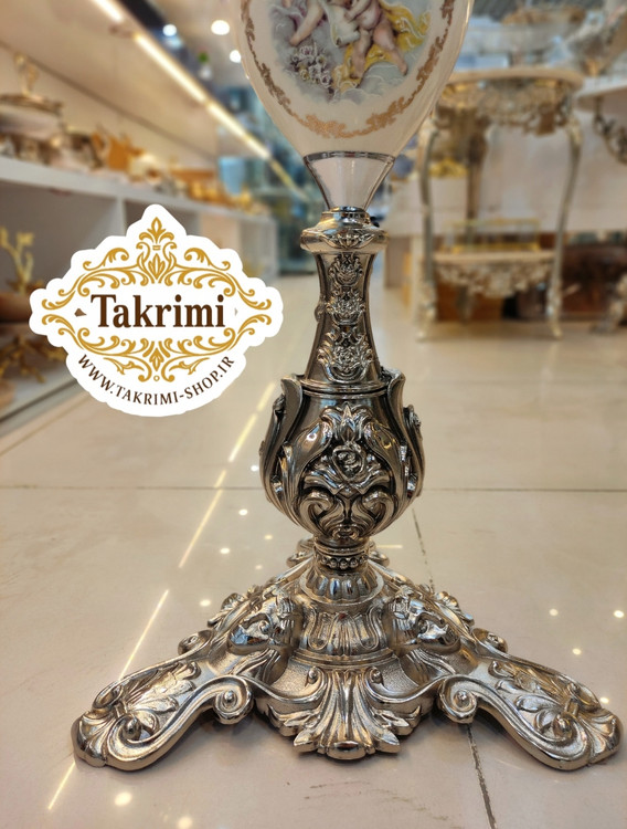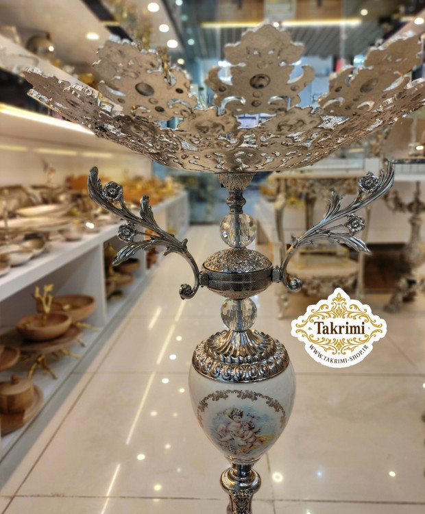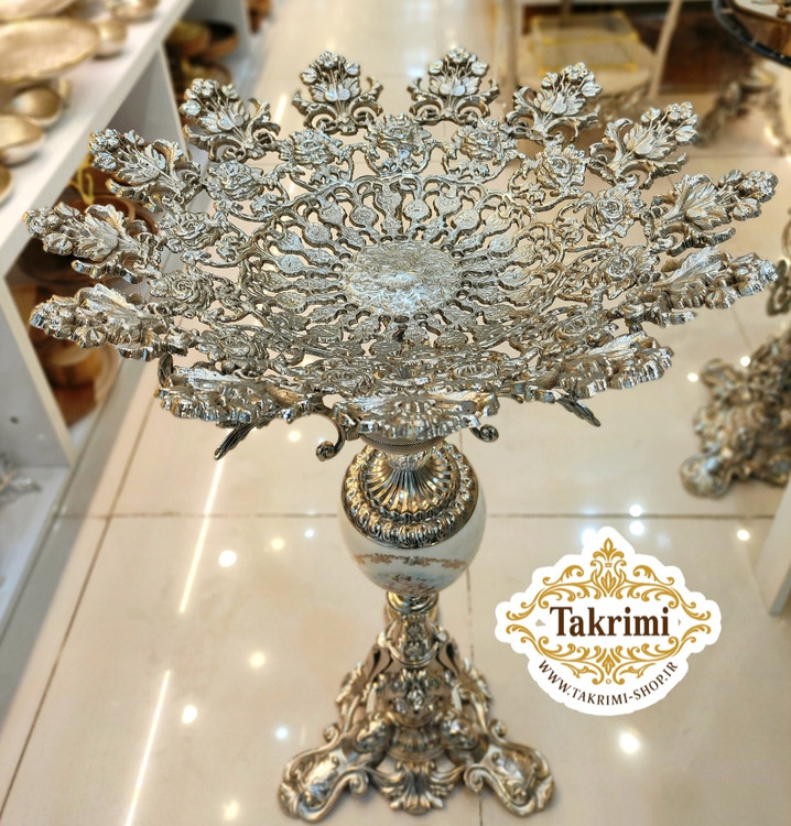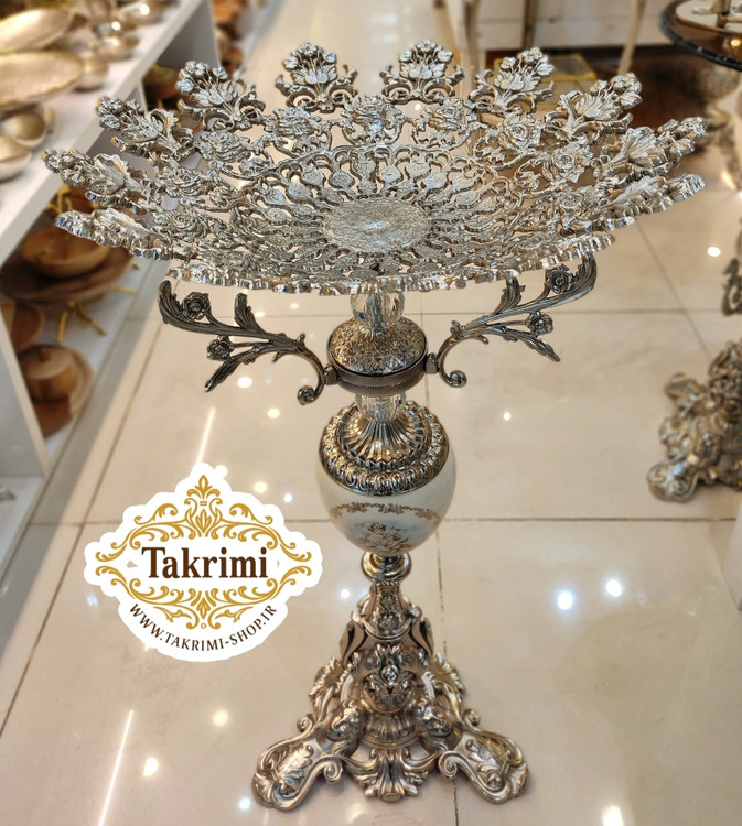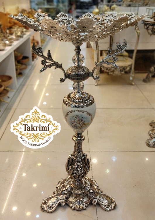 میز بار میوه خوری ایستاده کنار سالنی سلطنتی سایز بزرگ نقره ای ( با ظرف میوه سایز بزرگ ) ( تولیدی تکریمی شاپ )