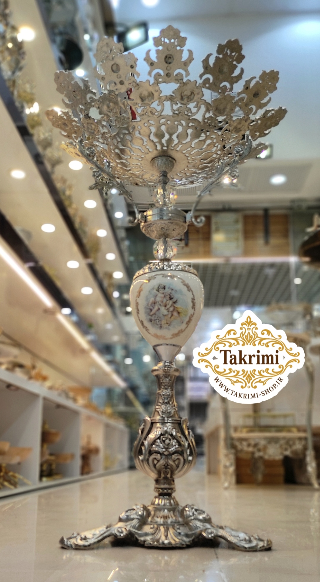 میز بار میوه خوری ایستاده کنار سالنی سلطنتی سایز بزرگ نقره ای ( با ظرف میوه سایز بزرگ ) ( تولیدی تکریمی شاپ )