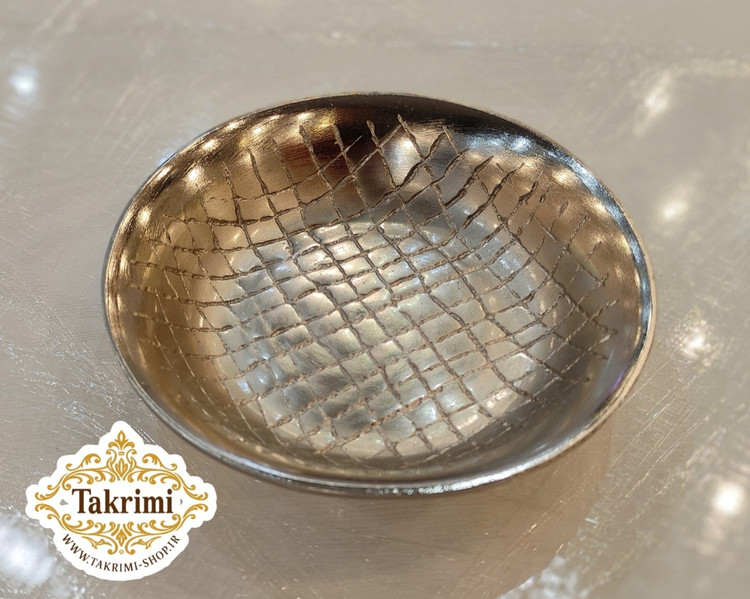 ظرف پیاله تک آجیل خوری تک نفره کوچک طرح چرمی آلومینیومی آلیاژی خالص ( تولیدی تکریمی شاپ )