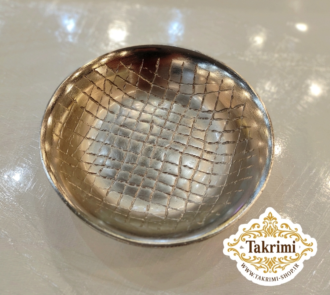 ظرف پیاله تک آجیل خوری تک نفره کوچک طرح چرمی آلومینیومی آلیاژی خالص ( تولیدی تکریمی شاپ )