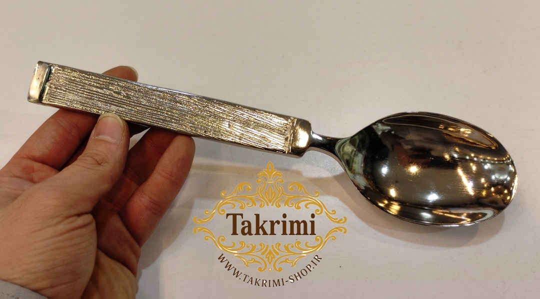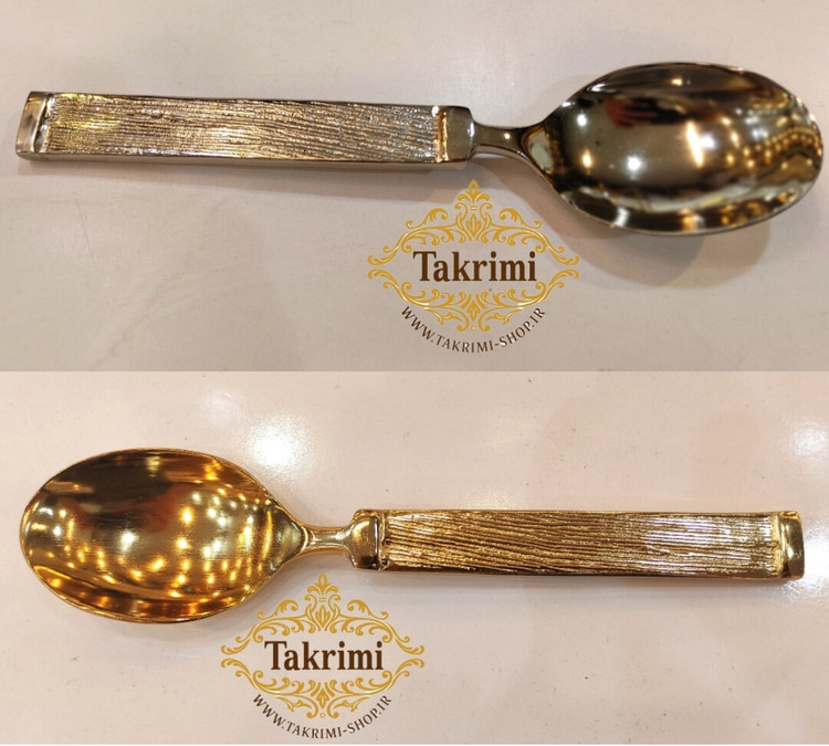 قاشق آجیل نیلوفر خط دار ساده آلومینیومی ( موجود در 2 رنگ طلایی و نقره ای ) ( توليدی تکریمی شاپ )