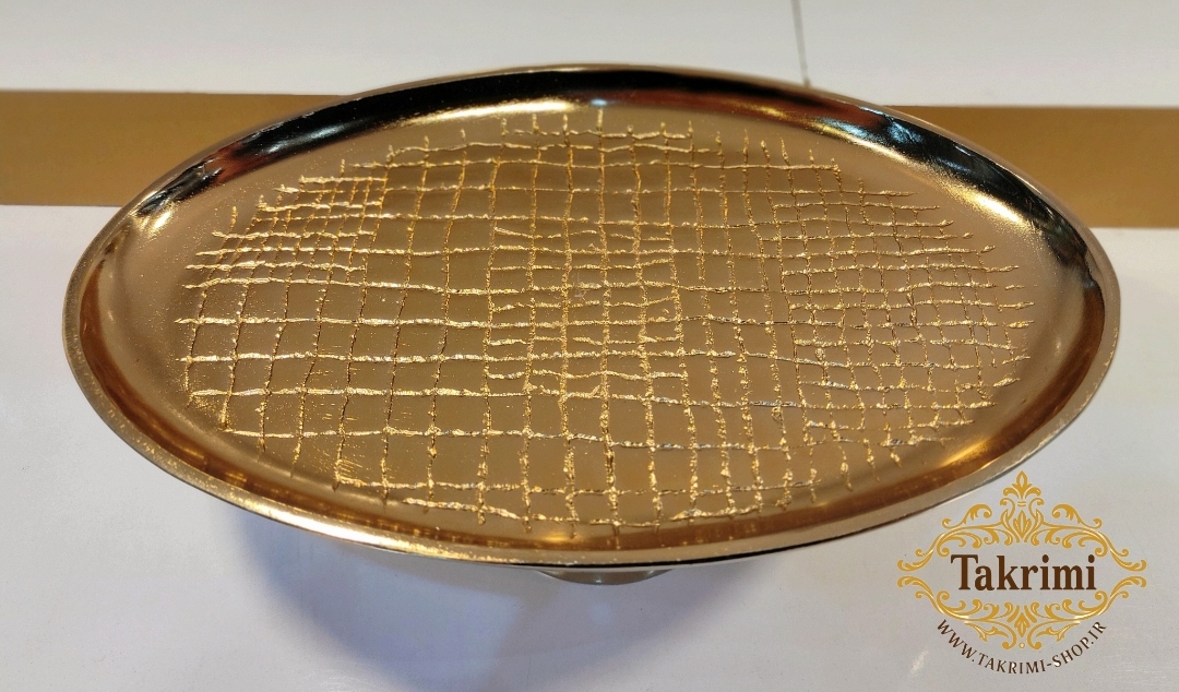 ظرف شیرینی خوری بیضی مدل چرمی طلایی فورتیک پوست ماری آلومینیومی ( تکریمی شاپ )
